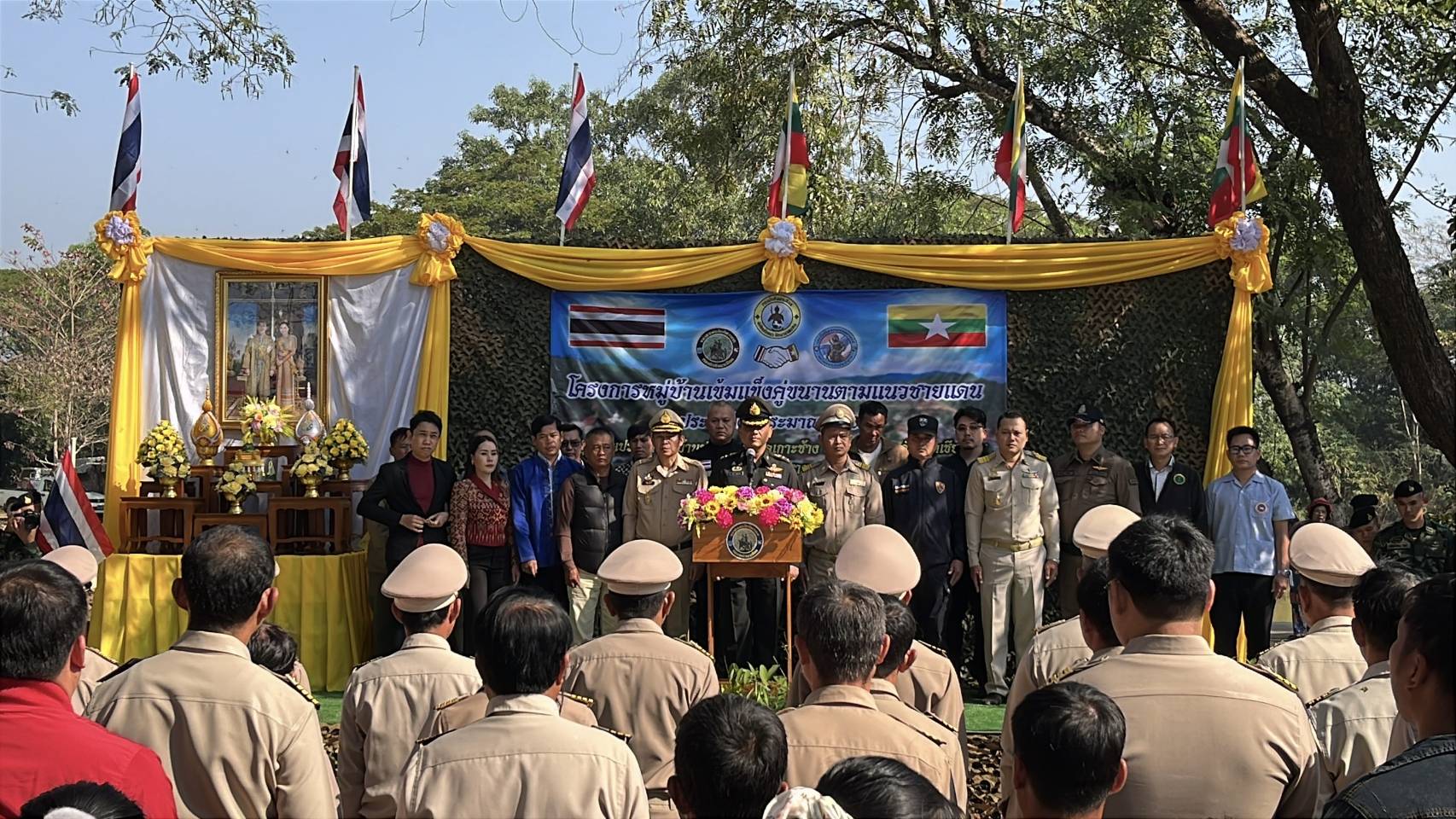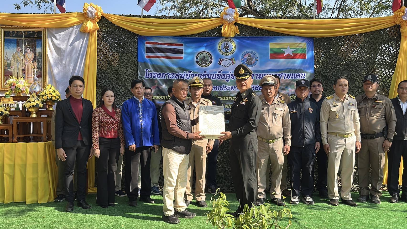 เมื่อวันที่ 22 ม.ค. 68 เวลา 09.00 น. กกล.ผาเมือง โดย ฉก.ทัพเจ้าตาก, ชป.กร.314 กกล.ผาเมือง, ชพส.3209 กอ.รมน.ภาค 3 สย.2 ร่วมกับ หน.ส่วนราชการ อ.แม่สาย, อปท., ภาคเอกชน อ.แม่สาย, กำนัน, ผญบ./ผช.ผญบ., ผู้นำตำบลเมืองพง สมม. และราษฎร ในพื้นที่ฝั่งไทย-สมม. ได้ร่วมกิจกรรมโครงการหมู่บ้านเข้มแข็งคู่ขนานตามแนวชายแดน ประจำปี 2568 ระหว่าง บ.ปางห้า หมู่ 1 ต.เกาะช้าง อ.แม่สาย จว.ช.ร. กับ บ.ป่ากุ๊ก เมืองพง สมม.