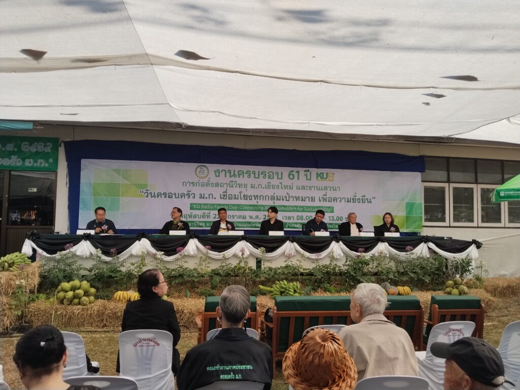 เมื่อวันที่ 22 ม.ค.69 สถานีวิทยุกระจายเสียงมหาวิทยาลัยเกษตรศาสตร์ จังหวัดเชียงใหม่ (สถานีวิทยุ ม.ก. เชียงใหม่) จัดงานเฉลิมฉลองเนื่องในโอกาสครบรอบ 61 ปี แห่งการก่อตั้ง ในวันพฤหัสบดีที่ 22 มกราคม ณ ที่ทำการสถานีวิทยุ ม.ก. เชียงใหม่ บ้านแม่แก้ดน้อย ต.ป่าไผ่ อ.สันทราย จ.เชียงใหม่ ภายใต้ชื่องาน “วันครอบครัว ม.ก. เชื่อมโยงทุกกลุ่มเป้าหมาย เพื่อความยั่งยืน” หรือ “KU Radio Family Day: Connecting All Stakeholders for Sustainability” เพื่อตอกย้ำบทบาทการเป็นสื่อกลางศาสตร์แห่งแผ่นดินที่รับใช้สังคมมาอย่างยาวนาน