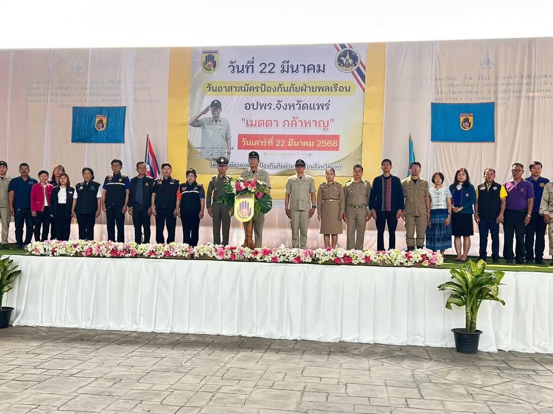 เมื่อเวลา 10.00 น วันที่ 22 มีนาคม 2568 ณ. ลานข่วงวัฒนธรรมเมืองแป้ (กาดสามวัย) เทศบาลเมืองแพร่ อำเภอเมืองแพร่ จังหวัดแพร่ นายสมชัย เลิศประสิทธิพันธ์ ผู้ว่าราชการจังหวัดแพร่/ผู้อำนวยการศูนย์อาสาสมัครป้องกันภัยฝ่ายพลเรือนจังหวัดแพร่ เป็นประธานจัดกิจกรรม เนื่องใน “วัน อปพร.” ประจำปี 2568 จังหวัดแพร่ โดยมีหัวหน้าส่วนราชการ ผู้แทนนายอำเภอทุกอำเภอ และผู้บริหารศูนย์ อปพร.เทศบาล/อบต. และ อปพร. เข้าร่วมกิจกรรมเนื่องในวัน อปพร. 22 มีนาคม 2568 จำนวน 400 คน