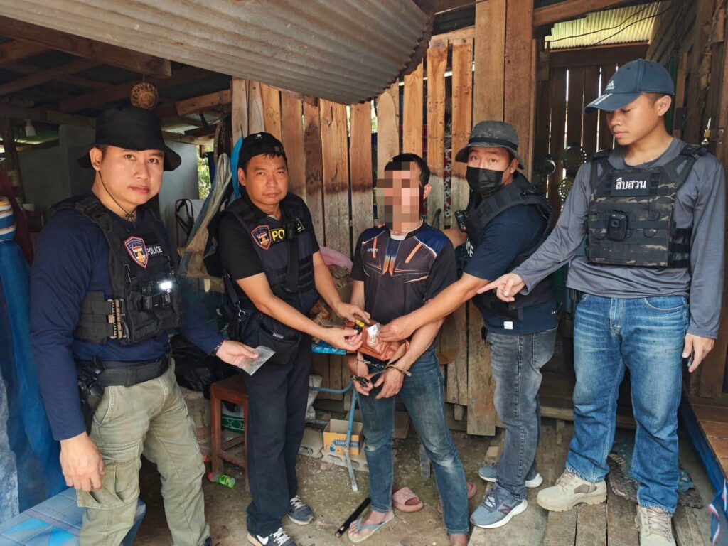 4.กระเป๋าคาดเอวแบบมีซิปสีน้ำตาล จำนวน 1 ใบ 5.ถุงพลาสติกขนาดเล็ก(ถุงแบ่งบรรจุยาเสพติด) จำนวน 135 ใบ 6.เทปกาว สีดำ จำนวน 1 ม้วน 7.กระเป๋าเป้ แบบลายพราง สีน้ำตาล จำนวน 1 ใบ 8.โทรศัพท์มือถือยี่ห้อออปโป้ สีฟ้า จำนวน 1 เครื่อง สถานที่จับกุม บริเวณบ้านเลขที่ 145 หมู่ที่ 4 ต.แม่เกิ๋ง อ.วังชิ้น จว.แพร่