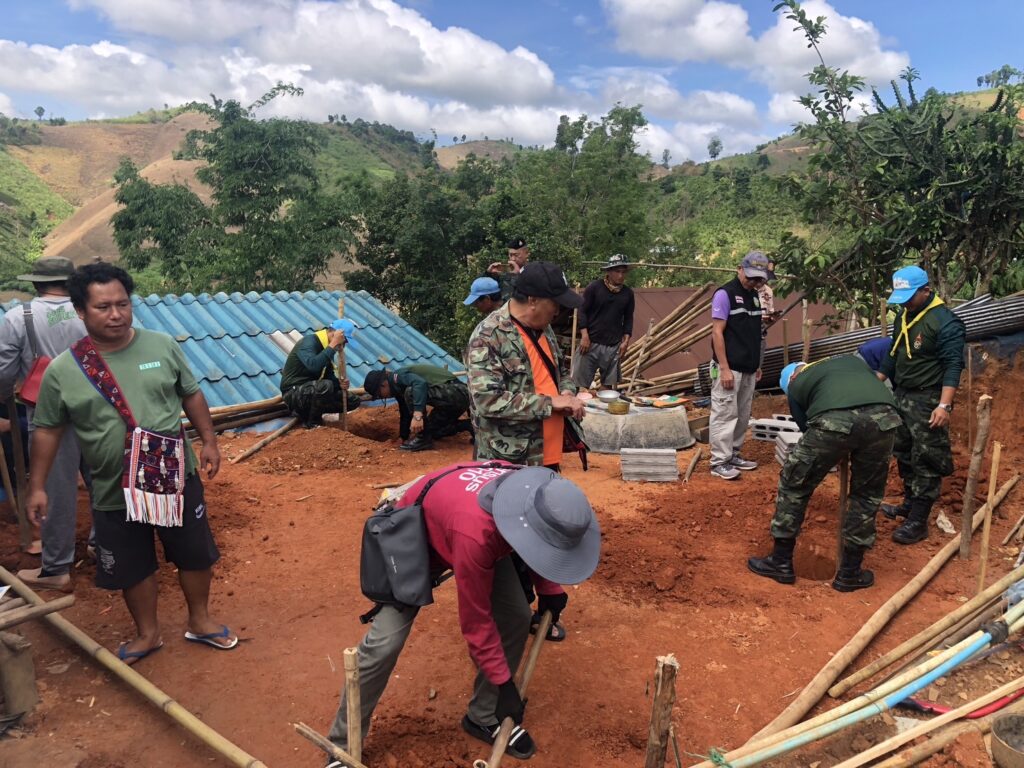 เมื่อวันที่ 22 พ.ค. 68 เวลา 09.30 น.กกล.ผาเมือง โดย ชป.กร.312 กกล.ผาเมือง ร่วมกับ อบต.แม่สลองใน, ศอป.โครงการ พมพ.แม่ฟ้าหลวง-แม่จัน, ผู้นำชุมชนและประชาชน บ.ห้วยกระ จัดกิจกรรมช่วยเหลือประชาชน โดยการสร้างบ้านให้กับ นายจะจ๋อย ลาหู่ ซึ่งเป็นผู้ยากไร้ ณ บ้านเลขที่ 405 บ.ห้วยกระ ม.26 ต.แม่สลองใน อ.แม่ฟ้าหลวง จว.ช.ร. มีผู้เข้าร่วมกิจกรรม 15 คน