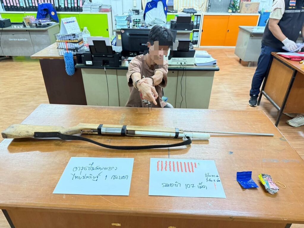 เชียงใหม่-ศป.ปส.แม่แจ่ม กวาดล้างยาเสพติด No Drugs No Dealers อย่างต่อเนื่อง ลงตรวจบ้านบนนา ต.ช่างเคิ่ง ค้นได้ยาบ้า 107 เม็ด อาวุธปืน เครื่องกระสุน รวบผู้ต้องหา 1 ราย ส่งดำเนินคดี