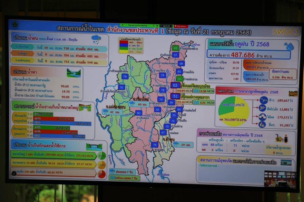 วันนี้ (22 ก.ค. 68) ที่ ศูนย์น้ำอัจฉริยะ สำนักงานชลประทานที่ 1 เชียงใหม่ นายภาสกร บุญญลักษม์ อธิบดีกรมป้องกันและบรรเทาสาธารณภัย เป็นประธานการประชุมกองอำนวยการป้องกันและบรรเทาสาธารณภัยกลาง เพื่อติดตามสถานการณ์อุทกภัยจากอิทธิพลของพายุวิภาในเขตพื้นที่ภาคเหนือ โดยห้วงที่ผ่านมากรมป้องกันและบรรเทาสาธารณภัย ได้เปิด Warroom เพื่อติดตามสถานการณ์ 24 ชั่วโมง และออกคำเตือนไปยังประชาชนในพื้นที่เสี่ยงอย่างต่อเนื่อง ทั้งในส่วนที่เป็นข้อมูลข่าวสารทั่วไป และการแจ้งเตือนภัยผ่านทางระบบ Cell Broadcast
