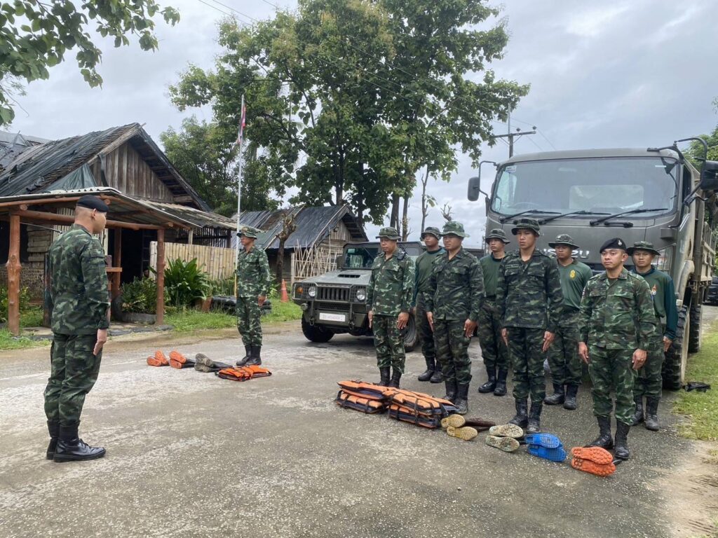 กกล.ผาเมือง จัดกำลังพล ชป.บรรเทาสาธารณภัย ดำเนินการตรวจสภาพความพร้อมในด้านกำลังพล, ยุทโธปกรณ์ และเครื่องมืออุปกรณ์ต่างๆ เพื่อเตรียมการช่วยเหลือผู้ประสบภัยพิบัติ ในพื้นที่ จว.ช.ร. และ จว.พ.ย.