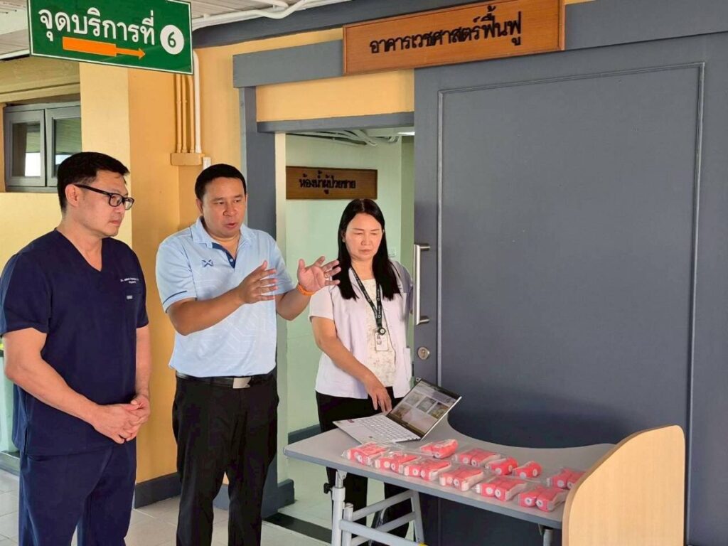 ผู้ช่วยศาสตราจารย์ ดร.ภาคภูมิ จารุภูมิ เป็นตัวแทน หน่วยวิจัยวัสดุและนวัตกรรมทางการแพทย์ คณะวิศวกรรมศาสตร์ มทร.ล้านนา ส่งมอบอุปกรณ์ โดยมี รองศาสตราจารย์ นายแพทย์จักรกริช กล้าผจญ หัวหน้าภาควิชาเวชศาสตร์ฟื้นฟู และ นายณรงค์รัตน์ สวัสติกานนท์ นักกายภาพบำบัดเชี่ยวชาญ เป็นผู้แทนรับมอบอุปกรณ์ โดยอุปกรณ์ที่ส่งมอบในครั้งนี้จะถูกนำไปใช้เพื่อช่วยเหลือผู้ป่วยที่เข้ารับการรักษาและฟื้นฟูสมรรถภาพ ณ ภาควิชาเวชศาสตร์ฟื้นฟู คณะแพทยศาสตร์ มหาวิทยาลัยเชียงใหม่ โดยมีเป้าหมายเพื่อยกระดับคุณภาพชีวิตของผู้ป่วย และส่งเสริมความสามารถในการดูแลตนเองได้อย่างเหมาะสม