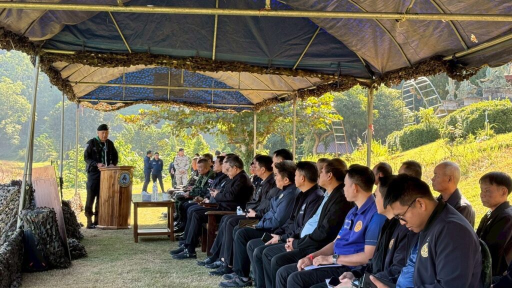 ในวันนี้ (22 พฤศจิกายน 2568) เลขาธิการ ป.ป.ส. และคณะ ได้ลงพื้นที่ แก่งผาได ต.ม่วงยาย อ.เวียงแก่น จ.เชียงราย ซึ่งอยู่ตรงข้ามด่านปากทา สปป.ลาว เพื่อสำรวจสภาพภูมิประเทศ และหารือกับหน่วยกองกำลังป้องกันชายแดน เพื่อเสริมประสิทธิภาพการสกัดกั้นยาเสพติดตามแนวชายแดนไทย-สปป.ลาว โดยมี พล.ต.สาธิต ไวยนนท์ ผบ.กกล.ผาเมือง พ.อ.ธนพันธ์ ขำทวี รอง ผอ.รมน.ภาค3 สย.2 พ.อ.สุพรรณ ร้อยพุทธ ผบ.ฉก.ทัพเจ้าตาก พ.อ.จักรพงษ์ สอดสี ผบ.ฉก.ทพ.31 น.อ.ภากร มาเนียม