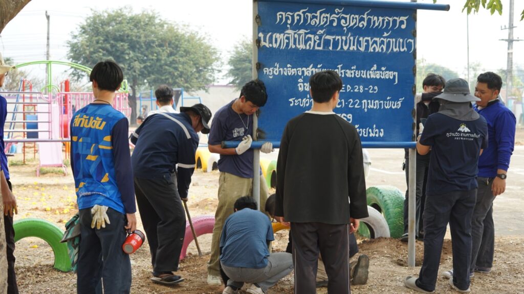 หลักสูตรครุศาสตร์อุตสาหการ มทร.ล้านนา ส่งต่อความสุขผ่านทักษะวิชาชีพ จัดกิจกรรม “ครูช่างจิตอาสาพัฒนาโรงเรียนเพื่อน้องๆ” ลงพื้นที่ปรับปรุงภูมิทัศน์และซ่อมแซมสนามเด็กเล่น ณ โรงเรียนบ้านห้วยม่วง สร้างรอยยิ้มและการเรียนรู้ที่ปลอดภัยให้เด็กไทย