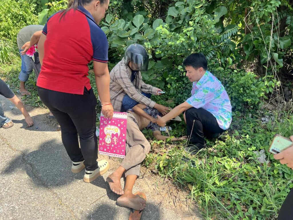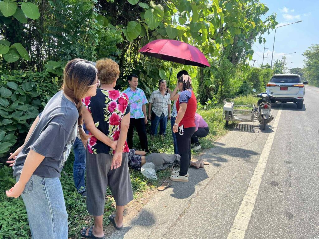สุโขทัย-อากาศร้อนจัด.ตาวัย88ควบจักรยานยนต์พ่วงข้างเป็นลม รถคว่ำหมดสติข้างถนน.