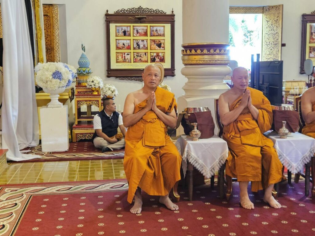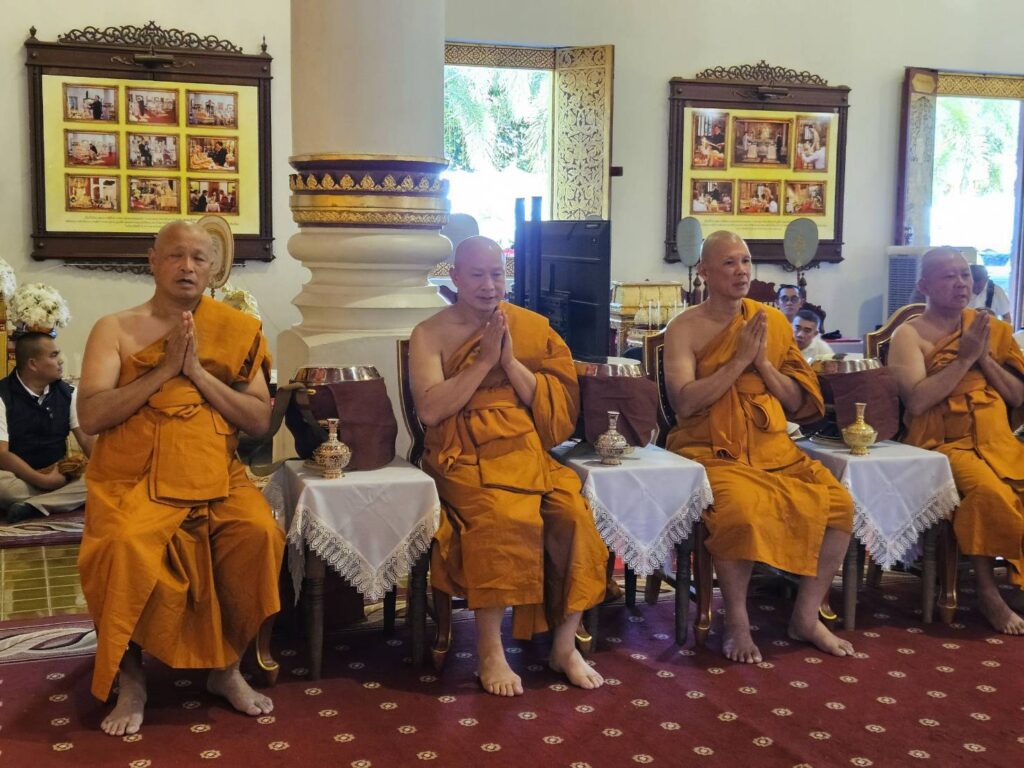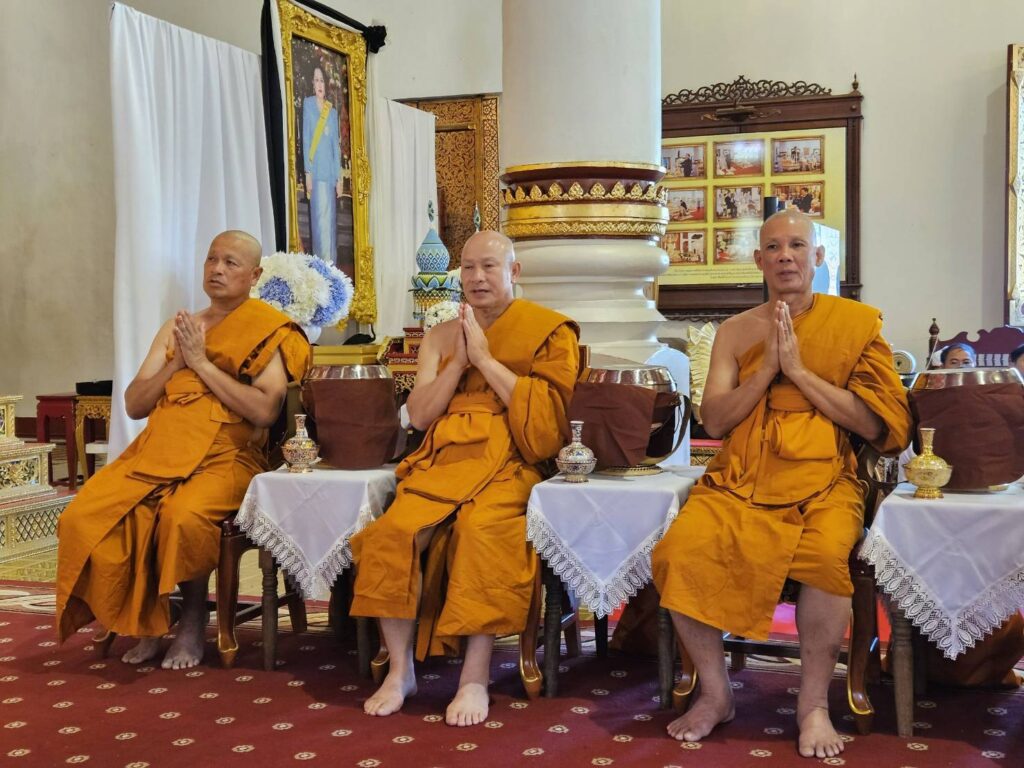 โดยมีร้อยเอก ธรรมนัส พรหมเผ่า รองนายกรัฐมนตรีและรัฐมนตรีว่าการกระทรวงเกษตรและสหกรณ์ นาย นเรศ ธำรงทิพยคุณ รัฐมนตรีช่วยว่าการกระทรวงเกษตรและสหกรณ์ พลตำรวจโท กฤตธาพล ยี่สาคร ผู้บัญชาการตำรวจภูธรภาค 5 นาย รัฐพล นราดิศร ผู้ว่าราชการจังหวัดเชียงใหม่ และกัลยาณมิตร เดินทางมาร่วมพิธีอุปสมบทหมู่ จำนวนมาก และร่วมพิธีใส่บาตรพระใหม่ ทั้ง 8 รูป ตามความเชื่อ จะได้กุศลผลบุญ มากมายมหาศาล หลังเสร็จพิธี พระใหม่ทั้ง 8 รูป จะเดินทางไป ปฎิบัติธรรม นั่งสมาธิกรรมฐาน ที่ศูนย์ปฎิบัติธรรม ตาณัง เลณัง เฉลิมราชย์ 60 ปี ในอำเภอดอยสะเก็ด จังหวัดเชียงใหม่ จนถึงวันที่ 6 ธันวาคม 2568 และจะไปลาสิกขา ที่วัดร่ำเปิง ตโปทาราม ตำบลสุเทพ จังหวัดเชียงใหม่ เพื่อทดแทนคุณบิดามารดา ผู้มีพระคุณ และน้อมถวายเป็นพระราชกุศล สมเด็จพระนางเจ้าสิริกิติ์ พระบรมราชินีนาถ พระบรมราชชนนี พันปีหลวง