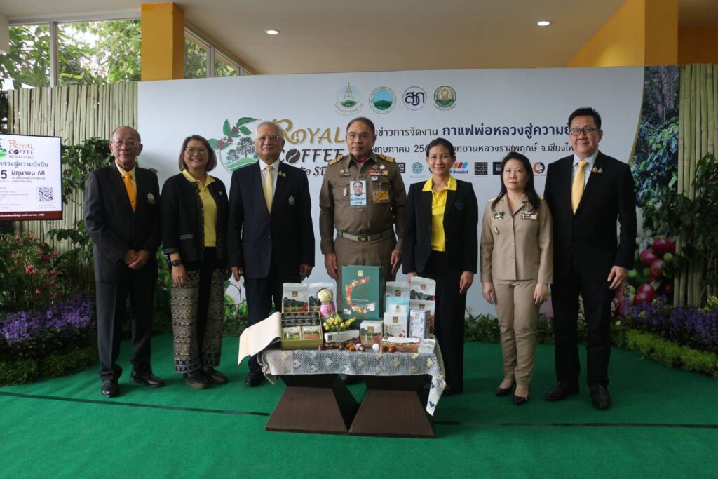 วันนี้ (22 พ.ค. 68) ที่ อาคารริมน้ำ อุทยานหลวงราชพฤกษ์ จ.เชียงใหม่ พลเอก กัมปนาท รุดดิษฐ์ องคมนตรี เลขาธิการและประธานกรรมการบริหารมูลนิธิโครงการหลวง พร้อมด้วย ศาสตราจารย์เกียรติคุณ ดร.พงษ์ศักดิ์ อังกสิทธิ์ กรรมการบริหารมูลนิธิโครงการหลวง ,ดร.อรทัย วงศ์เมธา ผู้อำนวยการศูนย์วิจัยเกษตรหลวงเชียงใหม่ ,นางสาวศิริกร วิวรวงษ์ รองผู้อำนวยการสำนักงานพัฒนาการวิจัยการเกษตร(องค์การเอกชน) ,นายมีชัย อมรพัฒนกุล นายกสมาคมบาริสต้าไทย และนางอาณา นิรันตรายกุล รองผู้อำนวยการสถาบัน ด้านการพัฒนาสถาบันวิจัยและพัฒนาพื้นที่สูง(องค์การมหาชน) ได้ร่วมแถลงข่าวการจัดงาน “กาแฟพ่อหลวงสู่ความยั่งยืน(Royal Coffee BCG to SDGs)” ซึ่งจะจัดขึ้นระหว่างวันที่ 11-15 มิถุนายน 2568 นี้ ณ อุทยานหลวงราชพฤกษ์ ตำบลแม่เหียะ อำเภอเมืองเชียงใหม่ จังหวัดเชียงใหม่