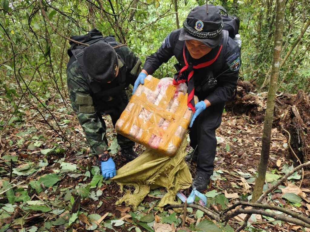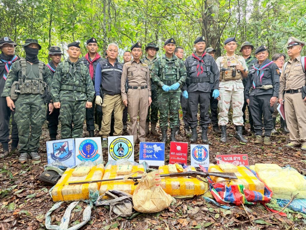 จนกระทั่ง เมื่อวันที่ 23 พฤษภาคม 2568 เวลา 06.00 น. ได้ตรวจพบกลุ่มบุคคลต้องสงสัย ประมาณ 5 – 8 ราย สะพายกระเป๋าเป้ดัดแปลงไว้ด้านหลังเดินเข้ามาในพื้นที่ดังกล่าว เจ้าหน้าที่จึงได้แสดงตัวเพื่อขอตรวจค้นแต่กลุ่มบุคคลดังกล่าวได้ใช้อาวุธปืนไม่ทราบชนิดและขนาดยิงใส่ฝ่ายเจ้าหน้าที่ จึงเกิดการปะทะกัน ประมาณ 5 นาที ผลการปะทะ ฝ่ายเจ้าหน้าที่ปลอดภัย จึงได้เข้าตรวจสอบพื้นที่เกิดเหตุ พบกลุ่มขบวนการฯ เสียชีวิต จำนวน 2 ราย ตรวจยึดกระสอบดัดแปลงเป็นเป้สะพายหลัง จำนวน 5 เป้ ภายในบรรจุยาเสพติดยาเสพติดให้โทษประเภท 1 (ยาบ้า) เป้ละ 100,000 เม็ด รวมประมาณ 500,000 เม็ด, อาวุธปืนยาวไทยประดิษฐ์ (ปืนแก๊ป) จำนวน 1 กระบอก และโทรศัพท์มือถือ จำนวน 1 เครื่อง เจ้าหน้าที่จึงได้จัดกำลังพลเพิ่มเติม จำนวน 2 ชุดปฏิบัติการ วางกำลังควบคุมพื้นที่เกิดเหตุ