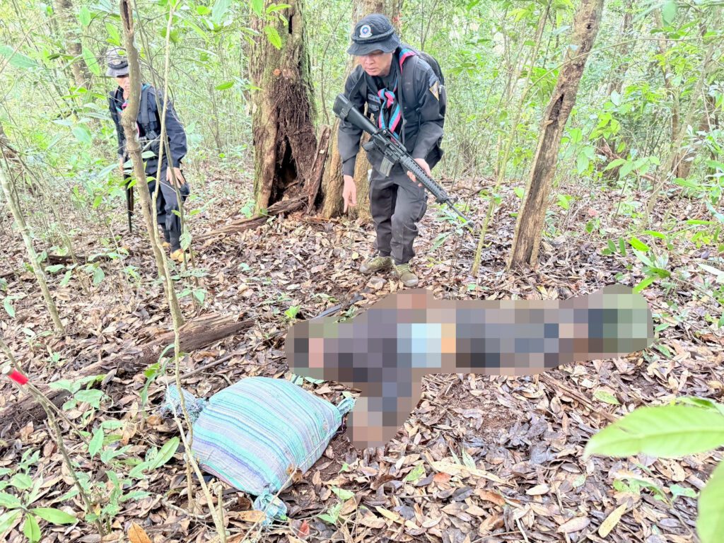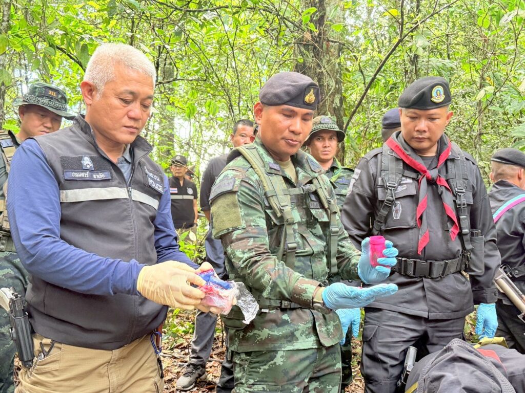 จนกระทั่ง เมื่อวันที่ 23 พฤษภาคม 2568 เวลา 06.00 น. ได้ตรวจพบกลุ่มบุคคลต้องสงสัย ประมาณ 5 – 8 ราย สะพายกระเป๋าเป้ดัดแปลงไว้ด้านหลังเดินเข้ามาในพื้นที่ดังกล่าว เจ้าหน้าที่จึงได้แสดงตัวเพื่อขอตรวจค้นแต่กลุ่มบุคคลดังกล่าวได้ใช้อาวุธปืนไม่ทราบชนิดและขนาดยิงใส่ฝ่ายเจ้าหน้าที่ จึงเกิดการปะทะกัน ประมาณ 5 นาที ผลการปะทะ ฝ่ายเจ้าหน้าที่ปลอดภัย จึงได้เข้าตรวจสอบพื้นที่เกิดเหตุ พบกลุ่มขบวนการฯ เสียชีวิต จำนวน 2 ราย ตรวจยึดกระสอบดัดแปลงเป็นเป้สะพายหลัง จำนวน 5 เป้ ภายในบรรจุยาเสพติดยาเสพติดให้โทษประเภท 1 (ยาบ้า) เป้ละ 100,000 เม็ด รวมประมาณ 500,000 เม็ด, อาวุธปืนยาวไทยประดิษฐ์ (ปืนแก๊ป) จำนวน 1 กระบอก และโทรศัพท์มือถือ จำนวน 1 เครื่อง เจ้าหน้าที่จึงได้จัดกำลังพลเพิ่มเติม จำนวน 2 ชุดปฏิบัติการ วางกำลังควบคุมพื้นที่เกิดเหตุ