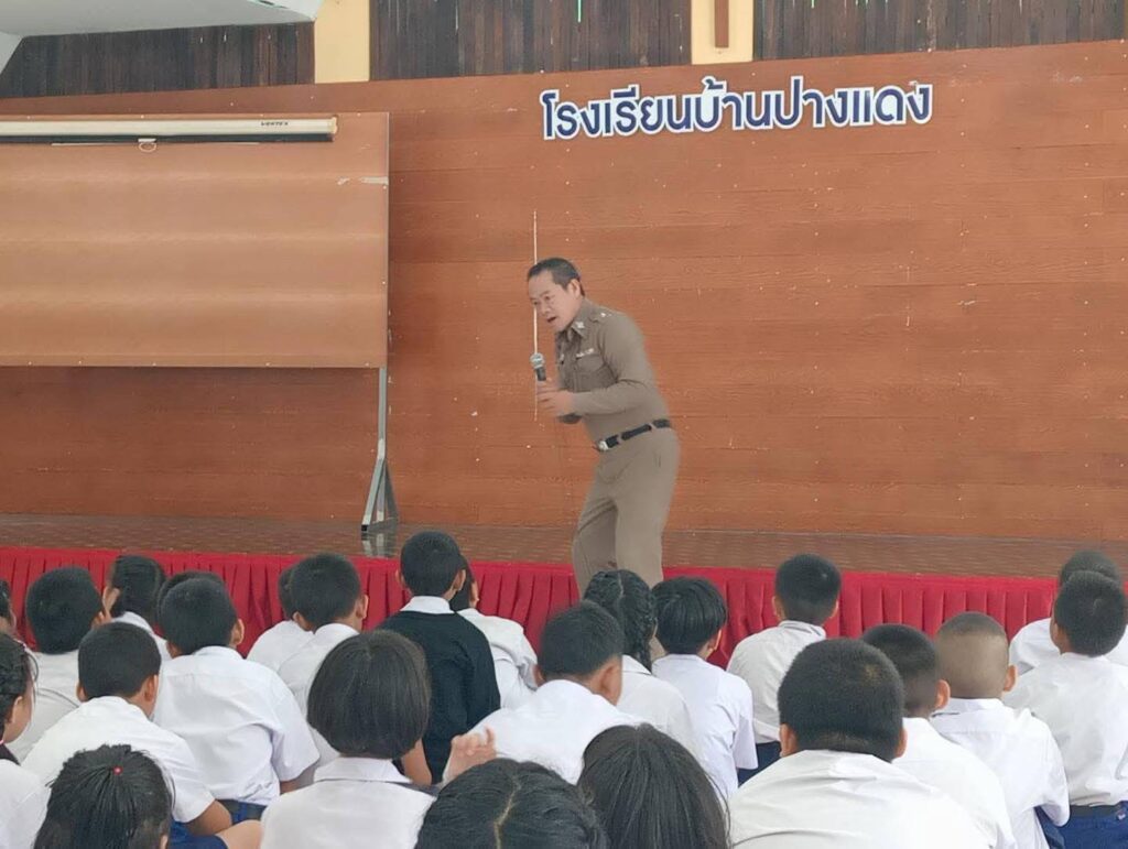 มอบหมายให้ร.ต.ต.กริชชานนท์ ทานัน รอง สว.( ป.) สภ.ดอยสะเก็ด ฯ ปฏิบัติหน้าที่เป็นวิทยากรให้ความรู้กับนักเรียนชั้น ป.1 – ชั้น ป.6 รร.บ้านปางแดง ต.ป่าเมี่ยง อ.ดอยสะเก็ด จ.เชียงใหม่ เพื่อให้นักเรียนมีทักษะการเอาตัวรอดจากการก่อเหตุร้ายในโรงเรียน Run Hide Fight หนี – ซ่อน – สู้ ในโครงการ ” ห่างไกลภัยใกล้ตัวและโจรผู้ร้าย ”