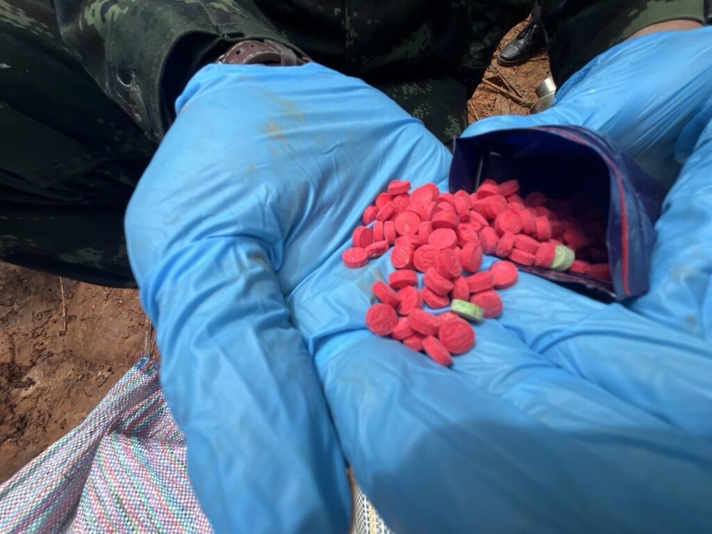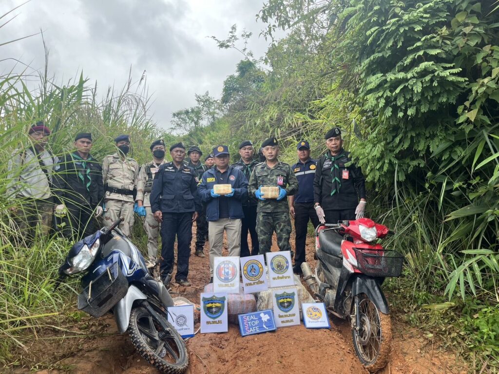 เมื่อวันที่ 22 มิถุนายน 2568 เวลา 18.30 น. กองร้อยทหารพรานที่ 3109 หน่วยเฉพาะกิจกรมทหารพรานที่ 31 จัดกำลัง จำนวน 1 ชุดปฏิบัติการ ทำการลาดตระเวนเฝ้าตรวจเพื่อป้องกันและสกัดกั้นการกระทำผิดตามพระราชบัญญัติยาเสพติด บริเวณ บ้านเจียงจาใส หมู่ที่11 ตำบลแม่สลองนอก อำเภอแม่ฟ้าหลวง จังหวัดเชียงราย ต่อมาเมื่อวันที่ 23 มิถุนายน 2568 เวลา 05.30 นาฬิกา ตรวจพบแสงไฟรถจักรยานยนต์ขับตามกันมา จำนวน 5 คัน ลงมาจากเส้นทาง บ้านสามสูง ตำบลแม่สลองใน อำเภอแม่ฟ้าหลวง จังหวัดเชียงราย เจ้าหน้าที่จึงได้ทำการตั้งจุดสกัด บริเวณ บ้านเจียงจาใส หมู่ที่11 ตำบลแม่สลองนอก อำเภอแม่ฟ้าหลวง จังหวัดเชียงราย พบจักรยานยนต์เข้ามาบริเวณดังกล่าว กลุ่มบุคคลดังกล่าวเมื่อเห็นเจ้าหน้าที่ ได้ทิ้งรถจักรยานยนต์ และอาศัยความมืดหลบหนีไป บางส่วนได้กลับรถหลบหนีไป จากการตรวจสอบบริเวณดังกล่าว ตรวจพบกระสอบฟาง จำนวน 2 กระสอบ ภายในบรรจุยาเสพติดให้โทษประเภท 1 (ยาบ้า) จำนวน 200,000 เม็ด 1 กระสอบ และ จำนวน 202,000 เม็ด 1 กระสอบ รวมประมาณ 402,000 เม็ด และรถจักรยานยนต์ ไม่ติดแผ่นป้ายทะเบียน จำนวน 2 คัน ปัจจุบันหน่วยได้จัดกำลังเพิ่มเติม จำนวน 1 ชป. เพื่อทำการตรวจสอบพื้นที่บริเวณโดยรอบ จากการตรวจสอบไม่พบยาเสพติดเพิ่มเติม