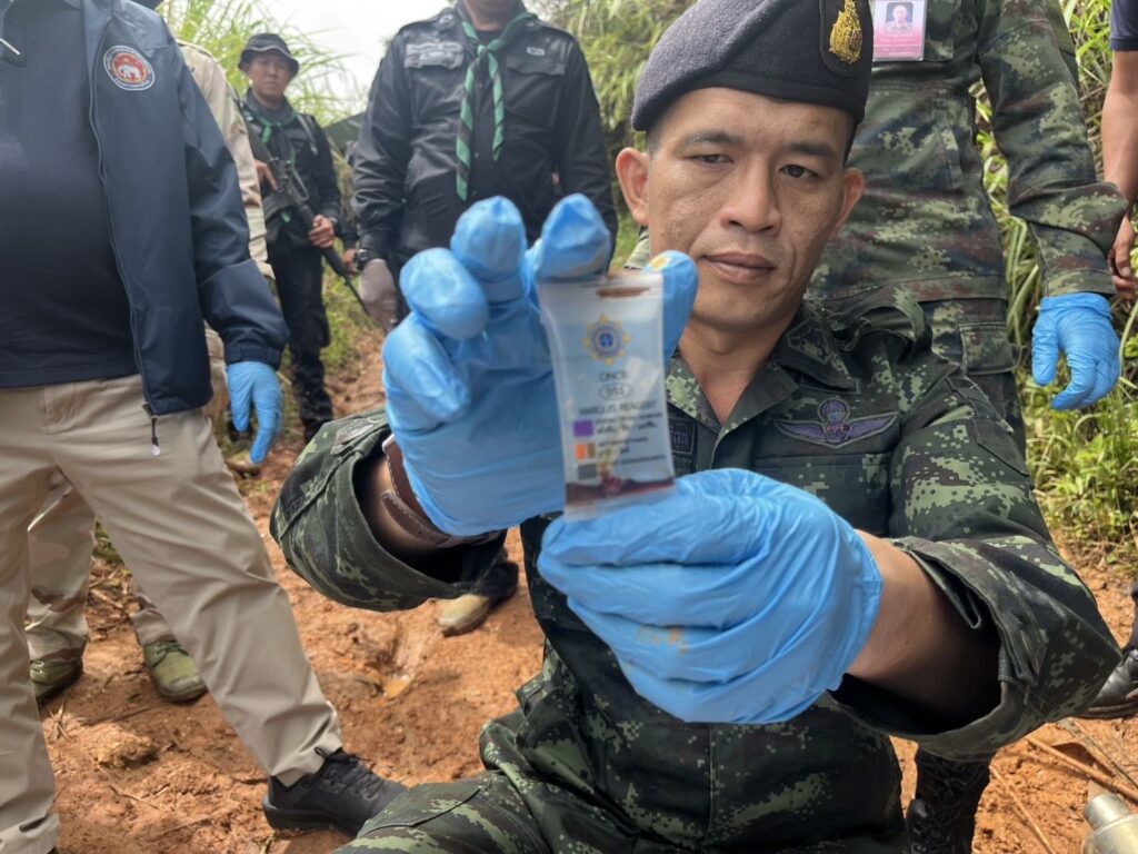 เมื่อวันที่ 22 มิถุนายน 2568 เวลา 18.30 น. กองร้อยทหารพรานที่ 3109 หน่วยเฉพาะกิจกรมทหารพรานที่ 31 จัดกำลัง จำนวน 1 ชุดปฏิบัติการ ทำการลาดตระเวนเฝ้าตรวจเพื่อป้องกันและสกัดกั้นการกระทำผิดตามพระราชบัญญัติยาเสพติด บริเวณ บ้านเจียงจาใส หมู่ที่11 ตำบลแม่สลองนอก อำเภอแม่ฟ้าหลวง จังหวัดเชียงราย ต่อมาเมื่อวันที่ 23 มิถุนายน 2568 เวลา 05.30 นาฬิกา ตรวจพบแสงไฟรถจักรยานยนต์ขับตามกันมา จำนวน 5 คัน ลงมาจากเส้นทาง บ้านสามสูง ตำบลแม่สลองใน อำเภอแม่ฟ้าหลวง จังหวัดเชียงราย เจ้าหน้าที่จึงได้ทำการตั้งจุดสกัด บริเวณ บ้านเจียงจาใส หมู่ที่11 ตำบลแม่สลองนอก อำเภอแม่ฟ้าหลวง จังหวัดเชียงราย พบจักรยานยนต์เข้ามาบริเวณดังกล่าว กลุ่มบุคคลดังกล่าวเมื่อเห็นเจ้าหน้าที่ ได้ทิ้งรถจักรยานยนต์ และอาศัยความมืดหลบหนีไป บางส่วนได้กลับรถหลบหนีไป จากการตรวจสอบบริเวณดังกล่าว ตรวจพบกระสอบฟาง จำนวน 2 กระสอบ ภายในบรรจุยาเสพติดให้โทษประเภท 1 (ยาบ้า) จำนวน 200,000 เม็ด 1 กระสอบ และ จำนวน 202,000 เม็ด 1 กระสอบ รวมประมาณ 402,000 เม็ด และรถจักรยานยนต์ ไม่ติดแผ่นป้ายทะเบียน จำนวน 2 คัน ปัจจุบันหน่วยได้จัดกำลังเพิ่มเติม จำนวน 1 ชป. เพื่อทำการตรวจสอบพื้นที่บริเวณโดยรอบ จากการตรวจสอบไม่พบยาเสพติดเพิ่มเติม