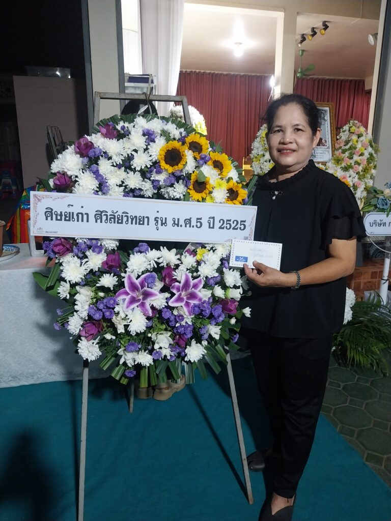 เมื่อวันที่ 23 มิถุนายน 2568 เวลา 19.00 น. นายธนรักษ์ ศรีบุญเรือง ประธานรุ่น ศิวิลัยวิทยา ม.ศ.5 และบรรณาธิการศูนย์ข่าวภาคเหนือ 24northernnews เชียงใหม่ พร้อมกับเพื่อนร่วมรุ่น ศิวิลัย วิทยา ม.ศ.5 ปี 2525 ร่วมงานบำเพ็ญกุศลศพ คุณแม่อาภรณ์ เงาแก้ว มารดา อรัญญา ใจชู เพื่อนร่วมรุ่น ศิวิลัยวิทยา รุ่น ม.ศ.5 ปี 2525 ณ วัดหนองสี่แจ่ง อ.สารภี จว.เชียงใหม่ ขอให้ดวงวิญญานคุณแม่อาภรณ์ฯ จงไปสู่สรวงสววรค์ ภพภูมิที่ดีตลอดไป