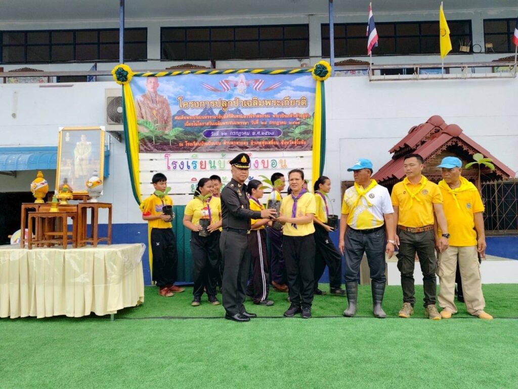 เนื่องในโอกาสมหามงคลเฉลิมพระชนมพรรษาพระบาทสมเด็จพระวชิรเกล้าเจ้าอยู่หัว 28 กรกฎาคม 2568 ณ โรงเรียนบ้านบึงบอน ต.กลางดง อ.ทุ่งเสลี่ยม จว.ส.ท. โดยร่วมกันปลูกต้นไม้ จำนวน 500 ต้น บนพื้นที่ 10 ไร่ ซึ่งกิจกรรมในครั้งนี้มีคณะพระสงฆ์จากวัดในพื้นที่, ประธานคณะกรรมการสถานศึกษา, ผู้อำนวยการโรงเรียน, คณะครู ผู้ปกครองนักเรียน, นักเรียน รร.บ้านบึงบอน, ผู้นำท้องที่ผู้นำท้องถิ่น และประชาชนในพื้นที่ เข้าร่วมกิจกรรมอย่างพร้อมเพรียง เพื่อแสดงความจงรักภักดี และน้อมสำนึกในพระมหากรุณาธิคุณอันหาที่สุดมิได้ พร้อมทั้งร่วมกันอนุรักษ์ทรัพยากรธรรมชาติและสิ่งแวดล้อมในพื้นที่โดยรอบโรงเรียนให้คงอยู่อย่างยั่งยืนต่อไป
