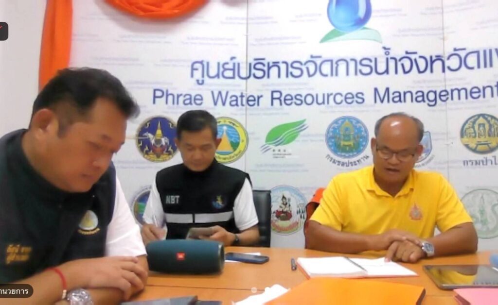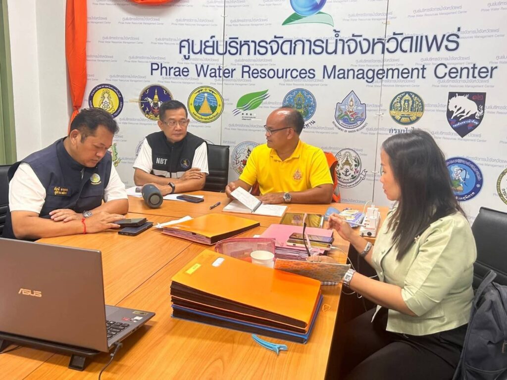 เมื่อเวลา 22.00 น. วันที่ 22 กรกฎาคม 2568 ที่ศูนย์บัญชาการเหตุการณ์ ศูนย์บริหารจัดการน้ำจังหวัดแพร่ อบจ.แพร่ นายอารุณ ปินตา หัวหน้าสำนักงานป้องกันและบรรเทาสาธารณภัยจังหวัดแพร่ นายอัสนี จารุชาติ ผู้อำนวยการโครงการชลประทานแพร่ นายอธิชัย ต้นกันยา ประชาสัมพันธ์จังหวัดแพร่ และนางสาวรำพู จันทร์ต๊ะปะตุ หัวหน้ากลุ่มงานยุทธศาสตร์และการจัดการ สำนักงาน ปภ.แพร่ ประชุมร่วมกับนายอำเภอและผู้แทน 8 อำเภอ ของจังหวัดแพร่เพื่อติดตามสถานการณ์ผลกระทบ จากพายุวิภาในพื้นที่จังหวัดแพร่