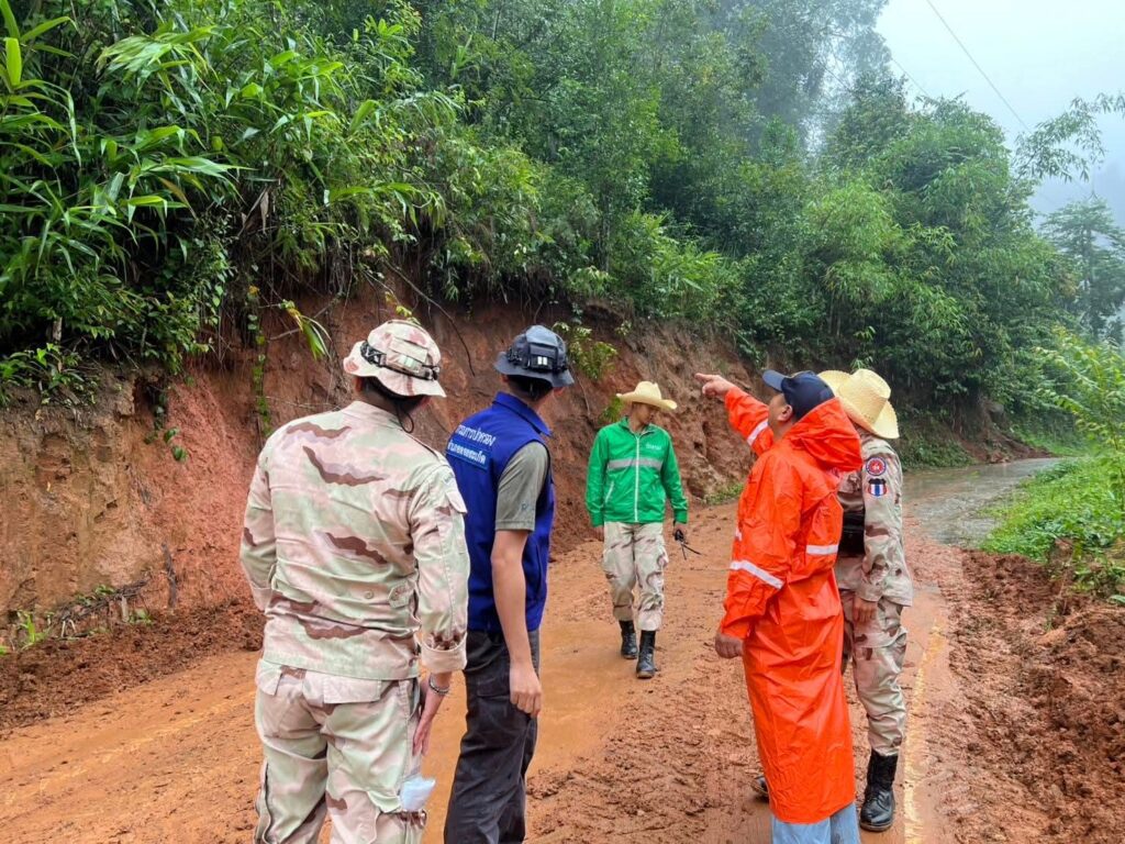 ศูนย์อำนวยการป้องกันและบรรเทาสาธารณภัยอำเภอดอยสะเก็ด รายงานผลการลงพื้นที่ติดตามสถานการณ์การเกิดดินสไลด์กีดขวางเส้นทางสัญจรในพื้นที่ ตลอดจนแนวทางการแก้ไขปัญหา ว่า วันที่ 23 กรกฎาคม 2568 เวลา 12.00 น. ภายใต้การอำนวยการของ นายนิติปกรณ์ แสงสุวรรณ นายอำเภอดอยสะเก็ด ได้สั่งการให้ นายสุรเชษฐ์ ชูเด่น ปลัดอำเภอฝ่ายความมั่นคง พร้อมด้วย เจ้าหน้าที่ปกครอง และสมาชิกกองร้อยอาสารักษาดินแดนอำเภอดอยสะเก็ดที่ 9 บูรณาการร่วมกับ องค์การบริหารส่วนตำบลเทพเสด็จ และชมรมกำนันผู้ใหญ่บ้านตำบลเทพเสด็จ ลงพื้นที่ติดตามสถานการณ์การเกิดดินสไลด์กีดขวางเส้นทางการสัญจรในพื้นที่ตำบลเทพเสด็จ อำเภอดอยสะเก็ด จังหวัดเชียงใหม่