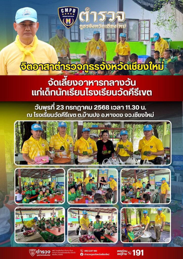 เชียงใหม่-จิตอาสาตำรวจภูธรจังหวัดเชียงใหม่ จัดกิจกรรมจิตอาสาเลี้ยงอาหารกลางวันให้กับนักเรียน โรงเรียนวัดคีรีเขต อ.หางดง จ.เชียงใหม่