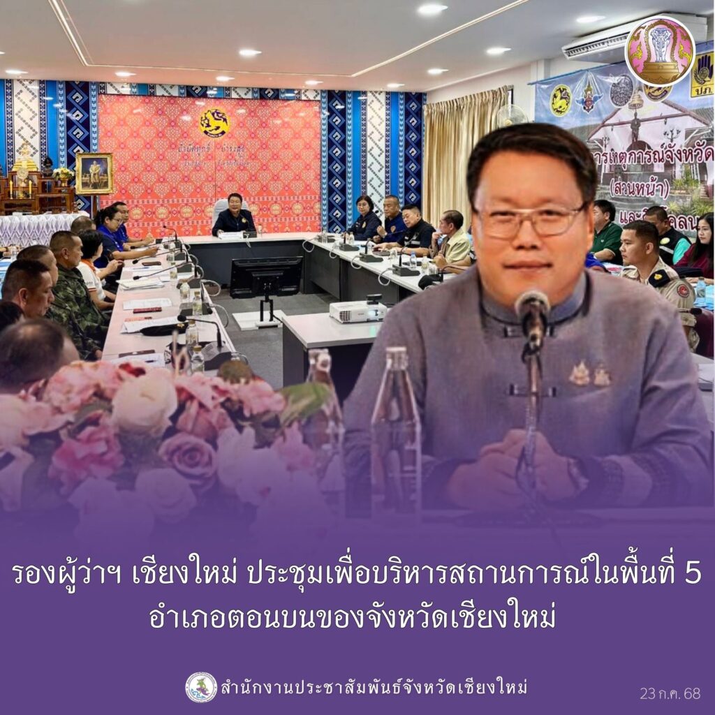 เชียงใหม่-รองผู้ว่าฯ ประชุมเพื่อบริหารสถานการณ์ในพื้นที่ 5 อำเภอตอนบนของจังหวัดเชียงใหม่