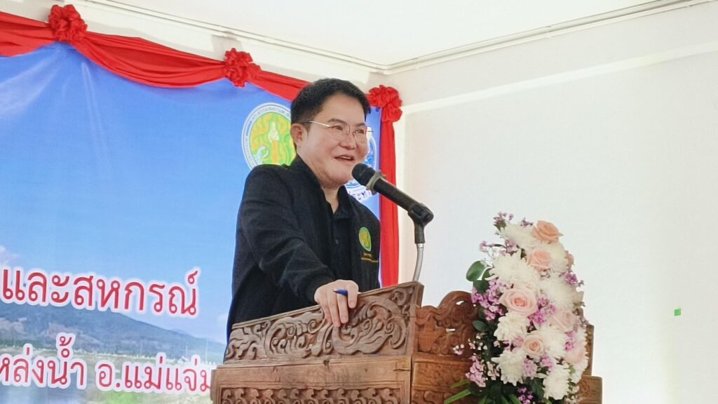 นายเกื้อกูล มานะสัมพันธ์สกุล ผู้อำนวยการโครงการชลประทานเชียงใหม่ กล่าวในที่ประชุมว่า อำเภอแม่แจ่มเป็นเมืองหลวงของโครงการพระราชดำริก็ว่าได้ เพราะแม่แจ่มเป็นอำเภอที่มีโครงการพระราชดำริมากที่สุด มากถึง 60 โครงการ สำหรับงานที่เกี่ยวข้องกับกรมชลประทานในปี 2568 จะเป็นการพัฒนาระบกระจายน้ำในพื้นที่ การปรับปรุงฝาย ซ่อมสิ่งก่อสร้างเดิม โดยเฉพาะโครงการอันเนื่องมาจากพระราชดำริ การพัฒนาหลักๆ มี 3 โครงการ โครงการแรก โครงการอ่างเก็บน้ำแม่ศึก ซึ่งมีความจุ 5.6 ล้าน ลบ.ม. หากมี่การก่อสร้างพื้นที่หลายตำบลใน อ.แม่แจ่ม จะได้ประโยชน์อย่างมาก ซึ่งโครงการอ่างเก็บน้ำแม่ศึกได้รับงบประมาณเพื่อการศึกษาผฃกระทบสิ่งแวดล้อมซึ่งจะดำเนินการในปี 2569 นี้