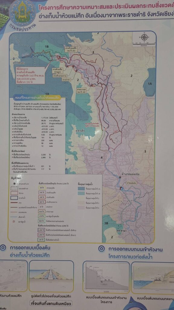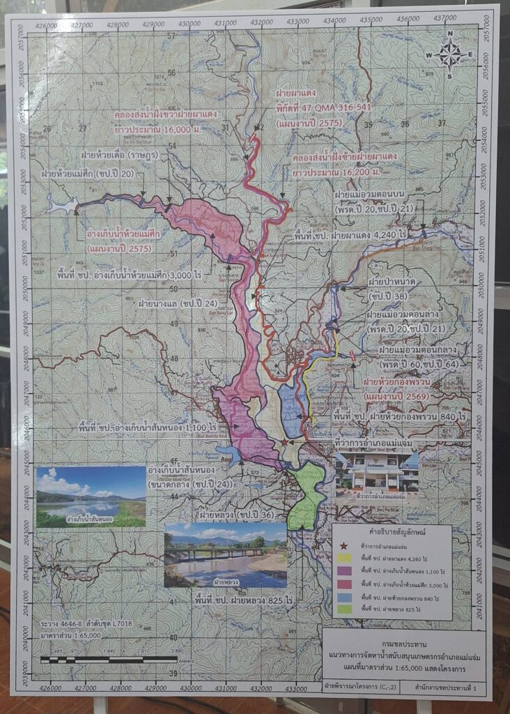 “อีกโครงการเป็นพื้นที่ตอนบนขึ้นไป คือ โครงการฝายผาแดง จะมีการปรับปรุงให้เป็นประตูระบายน้ำ สำหรับข้อกังวลว่าหากก่อสร้างแล้วน้ำจะไม่ไปถึงฝายหลวง ขอยืนยันว่าน้ำไปถึงฝายหลวงแน่ เพราะมีการศึกษาแล้ว โครงการที่ 3 คือโครงการอ่างเก็บน้ำแม่ลอยพร้อมระบบส่งน้ำ ซึ่งทั้ง 3 โครงการเป็นการพัฒนาในพื้นที่แม่แจ่มตอนกลาง และไปถึงตอนท้ายสุดคือ ฝายหลวง ซึ่งจะมีโครงการพัฒนาปรับปรุงด้วยเช่นกัน ทั้งหมดนี้จะยังประโยชน์ให้กับพื้นที่ราว 20,000 ไร่ ทั้งนี้ในช่วงปี 2569-2571 จะมีงบประมาณของกรมชลประทานลงมาในพื้นที่อำเภอแม่แจ่มราว 600 ล้านบาท” ผคป.เชียงใหม่ กล่าว