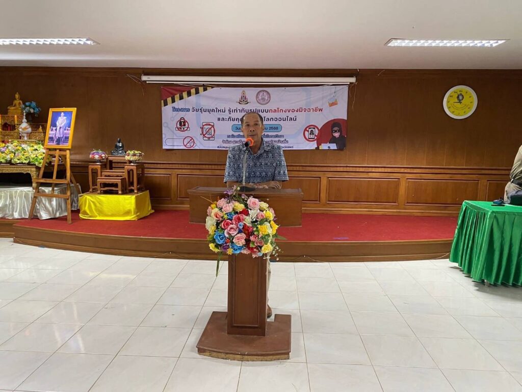 “พ.ต.ท.ธงชัย เนื่องพืช” นย.ทต.บ้านถิ่นฯ เข้าร่วมพิธีเปิดการอบรมโครงการ “วัยรุ่นยุคใหม่ รู้เท่าทันรูปแบบกลโกงของมิจฉาชีพ และภัยคุกคามบนโลกออนไลน์”