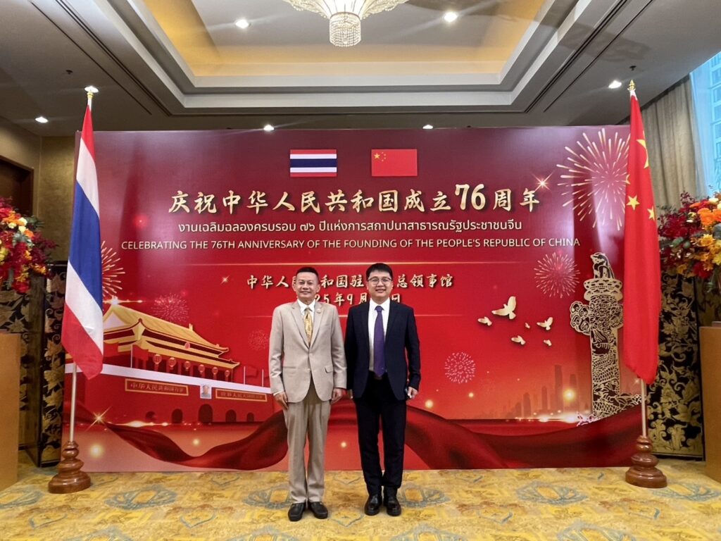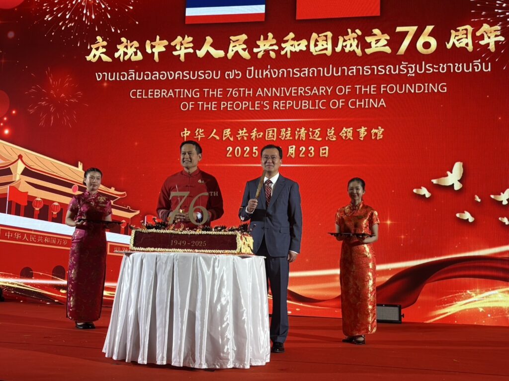 วันอังคารที่ 23 กันยายน 2568 เวลา 18.30 น. สถานกงสุลใหญ่แห่งสาธารณรัฐประชาชนจีน ประจำเชียงใหม่ โดย นายเฉิน ไห่ผิง กงสุลใหญ่แห่งสาธารณรัฐประชาชนจีนประจำเชียงใหม่ จัดงานเลี้ยงฉลองครบรอบ 76 ปี แห่งการสถาปนาสาธารณรัฐประชาชนจีน ซึ่งวันชาติของประเทศจีน ตรงกับวันที่ 1 ตุลาคมของทุกปี ซึ่งประเทศไทยและสาธารณรัฐประชาชนจีน มีความใกล้ชิดกันอย่างแน่นแฟ้น มีการแลกเปลี่ยนการเยือนในทุกระดับอย่างสม่ำเสมอ และยกระดับความสัมพันธ์เป็น “หุ้นส่วนความร่วมมือเชิงยุทธศาสตร์” อย่างรอบด้าน เมื่อปี พ.ศ.2555 โดยทั้งสองประเทศมีความสัมพันธ์อันดีมาอย่างยาวนานบนพื้นฐานของความคล้ายคลึงทางสังคม วัฒนธรรม และประเพณี ดังคำกล่าวที่ว่า “ไทย-จีน ใช่อื่นไกลพี่น้องกัน” โดยสถานกงสุลใหญ่จีน ณ จังหวัดเชียงใหม่ เปิดอย่างเป็นทางการเมื่อวันที่ 10 เมษายน พ.ศ. 2534 (ค.ศ. 1991) เป็นสถานกงสุลใหญ่แห่งแรกที่จัดตั้งขึ้นในประเทศไทย โดยในงานมี นายทศพล เผื่อนอุดม ผู้ว่าราชการจังหวัดเชียงใหม่ ผู้ว่าราชการจังหวัดภาคเหนือ ให้เกียรติเข้าร่วมงานฯ และท่านผู้มีเกียรติไปร่วมแสดงความยินดีอย่างคับคั่ง
