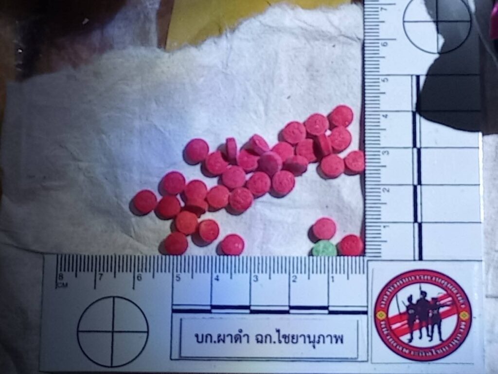ในระหว่างปฏิบัติหน้าที่ ได้ยินเสียงคนเดิน ห่างจากจุดตรวจประมาณ 50 เมตร ชุดปฏิบัติการจึงเข้าตรวจสอบพื้นที่ ตรวจพบกระสอบเป้ดัดแปลงสีรุ้งห่อด้วยถุงพลาสติกสีดำ จำนวน 1 กระสอบ ภายในบรรจุยาบ้า จำนวนประมาณ 100,000 เม็ด แต่ไม่พบตัวผู้ที่เกี่ยวข้อง คาดใช้ความชำนาญพื้นที่หลบหนี