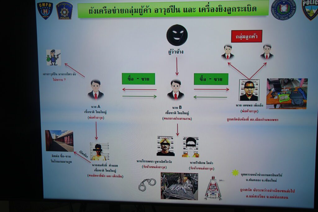 ด้าน พล.ต.ท.กฤตธาพล ยี่สาคร ผบช.ภ.5 เปิดเผยว่าจากการสอบสวนกลุ่มผู้ต้องหา ให้การรับสารภาพว่าได้รับจ้างขนอาวุธดังกล่าวจากบริเวณด้านหลังห้างโลตัส สาขาคำเที่ยง ตำบลช้างเผือก เพื่อนำไปส่งให้กับชนกลุ่มน้อย KNU ที่บ้านแม่สามแลบ อำเภอสบเมย จว.แม่ฮ่องสอน โดยได้รับค่าจ้างครั้งละ 8,000-9,000 บาท และเคยรับจ้างขนมาแล้ว 3 ครั้ง โดยจะมีคนจัดหาอาวุธทางแถบชายแดนและในพื้นที่ กทม. ซึ่งเป็นอาวุธปืนใหม่ทั้งหมด ตอนนี้ทางเจ้าหน้าที่ตำรวจกำลังเร่งขยายผลหาแหล่งที่มาของอาวุธรวมถึงกลุ่มขบวนการค้าอาวุธทั้งหมดมาดำเนินดคีตามกฎหมายบ้านเมืองต่อไป