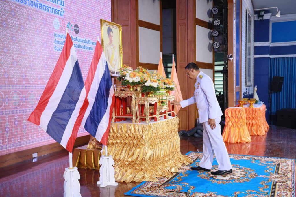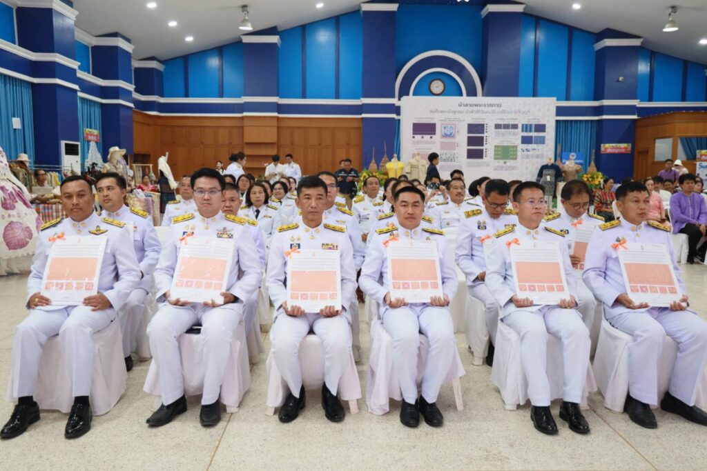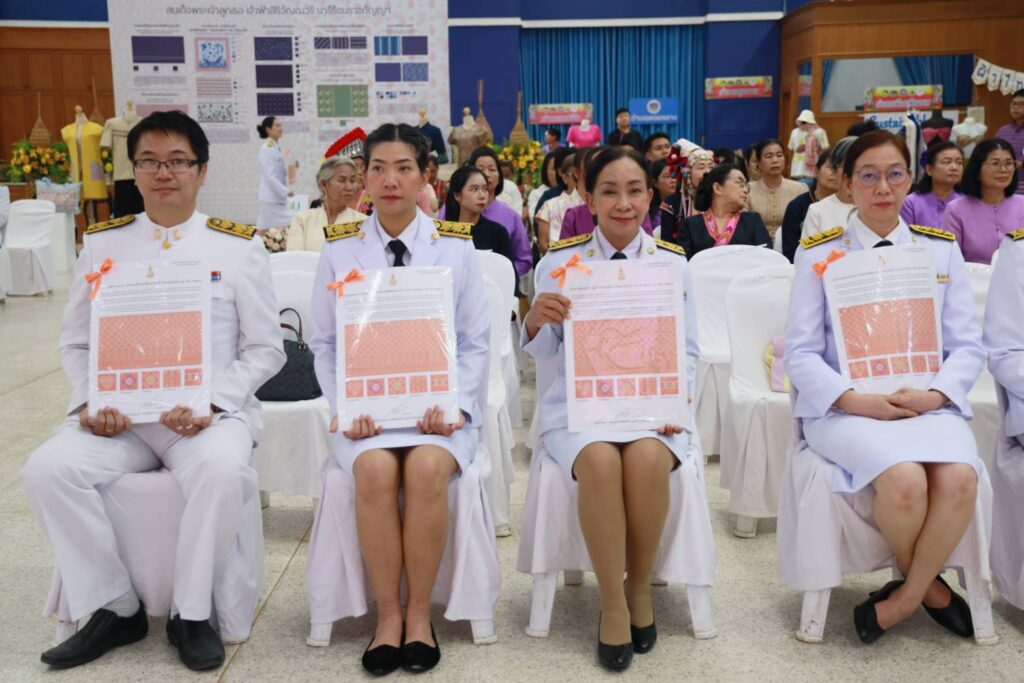 จังหวัดเชียงราย-จัดพิธีมอบแบบลายผ้าพระราชทาน ต้นแบบและพัฒนาต่อยอดภูมิปัญญาและหัตถศิลป์พื้นบ้าน ให้แก่หัวหน้าส่วนราชการ นายอำเภอ และกลุ่มทอผ้าหรืองานหัตถกรรมจังหวัดเชียงราย