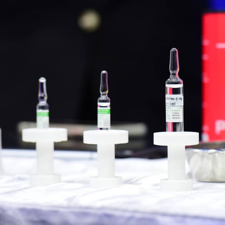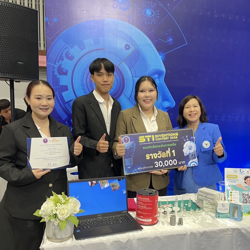 ความพิเศษของ “อุปกรณ์เปิดบรรจุภัณฑ์ยาฉีดชนิดแอมพูล” ออกแบบมาเพื่อแก้ปัญหาความเสี่ยงและอันตรายที่อาจเกิดขึ้นจากการเปิดหลอดบรรจุยา (Ampule) แบบดั้งเดิมด้วยมือ โดยใช้เซรามิก Alumina ร่วมกับการออกแบบโครงสร้างที่แม่นยำเพื่อสร้างแรงบิด (Torque) และแรงกด (Pressure) ที่เหมาะสมในการตัดส่วนคอของหลอดแก้วบรรจุยาออกอย่างรวดเร็วและปลอดภัย เพิ่มความรวดเร็วและแม่นยำ ในการเตรียมยา ลดการสูญเสียของตัวยา จากการเปิดขวดผิดวิธี ส่งเสริมการใช้งานที่ยั่งยืน ด้วยวัสดุที่ทนทาน และลดต้นทุนในระยะยาว เพราะเป็นอุปกรณ์ ไม่ต้องใช้ไฟฟ้าหรือแบตเตอรี่ โดยผลงานดังกล่าว ได้รับรางวัลชนะเลิศ รับเงินรางวัล 30,000 บาท พร้อมเกียรติบัตร และได้สิทธิ์เป็นตัวแทนภาคเหนือเข้าประกวดในระดับประเทศในวันที่ 25 กรกฎาคม 2568 ต่อไป
