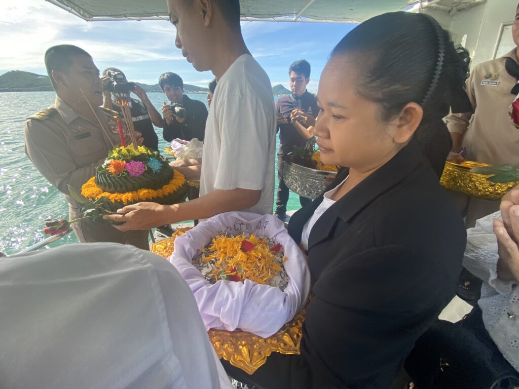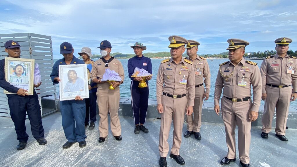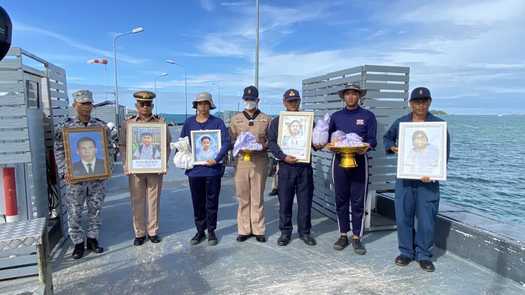 กองทัพเรือ พร้อมญาตินำอัฐิ 5 ครอบครัวผู้เสียชีวิตจากเหตุขัดแย้งชายแดนไทย–กัมพูชา ลอยอังคารส่งดวงวิญญาณ กลางอ่าวสัตหีบ