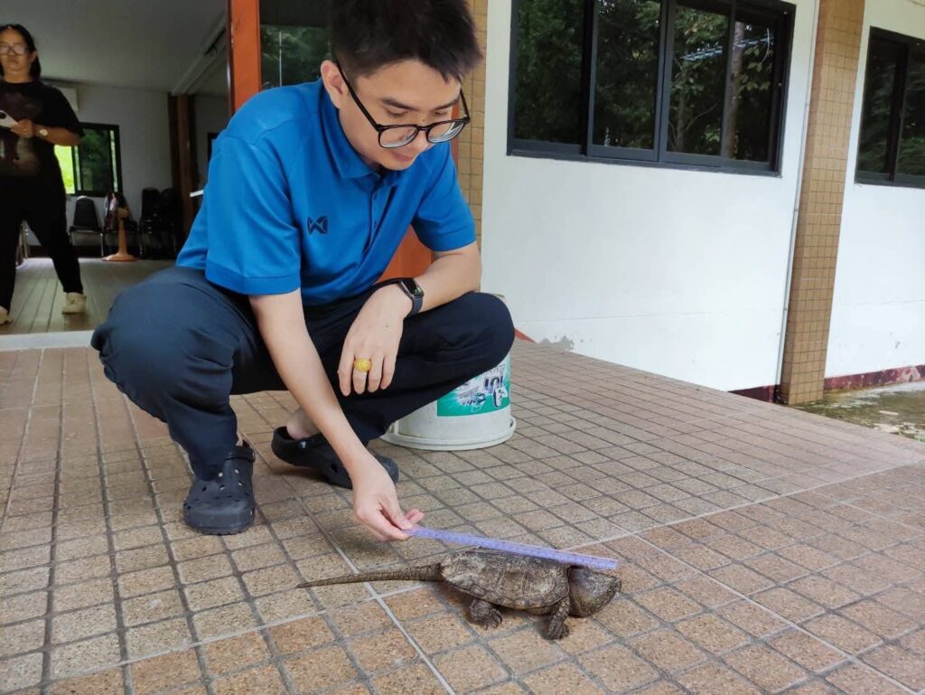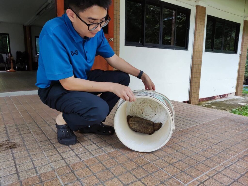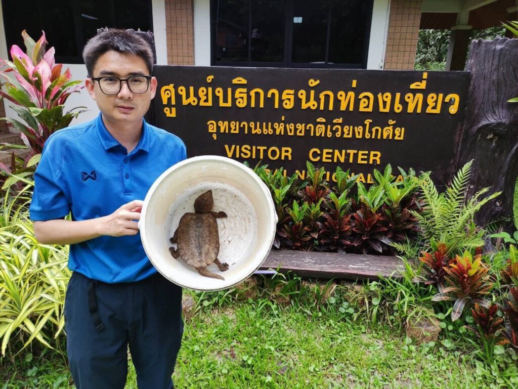 “โดยทำการตรวจดูเบื้องต้น พบว่าแข็งแรง ไม่มีบาดแผล หรือว่าได้รับบาดเจ็บ จึงได้ปล่อยลงห้วยในเขตอุทยานฯ ซึ่งเป็นที่อยู่อาศัยที่สมบูรณ์ และปลอดภัยจากผู้ล่า”