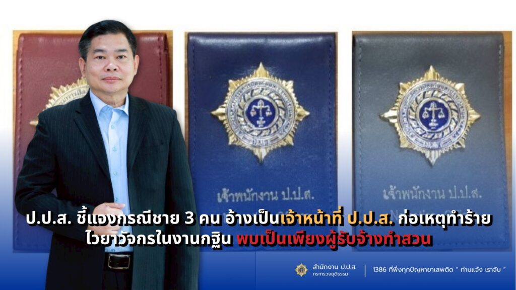 ป.ป.ส. ชี้แจงกรณีชาย 3 คน อ้างเป็นเจ้าหน้าที่ ป.ป.ส. ก่อเหตุทำร้ายร่างกายไวยาวัจกรในงานกฐิน พบเป็นเพียงผู้รับจ้างทำสวน