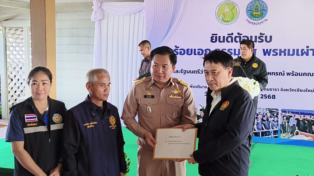 เมื่อวันที่ 24 พฤศจิกายน 2568 ที่อาคารพลับพลา บริเวณสันเขื่อนแม่งัดสมบูรณ์ชล อ.แม่แตง จ.เชียงใหม่ นายธรรมนัส พรหมเผ่า รองนายกรัฐมนตรีและรัฐมนตรีว่าการกระทรวงเกษตรและสหกรณ์ พร้อมคณะเดินทางเพื่อตรวจราชการและติดตามผลการดำเนินงานก่อสร้างโครงการเพิ่มปริมาณน้ำในอ่างเก็บน้ำเขื่อนแม่กวงอุดมธารารา จังหวัดเชียงใหม่ โดยมี หน่วยงานราชการสังกัดกระทรวงเกษตรและสหกรณ์ ส่วนราชการที่เกี่ยวข้อง ผู้นำท้องที่ ผู้นำท้องถิ่น และกลุ่มเกษตกร ประชาชนในพื้นที่อำเภอแม่แตงให้การต้อนรับ