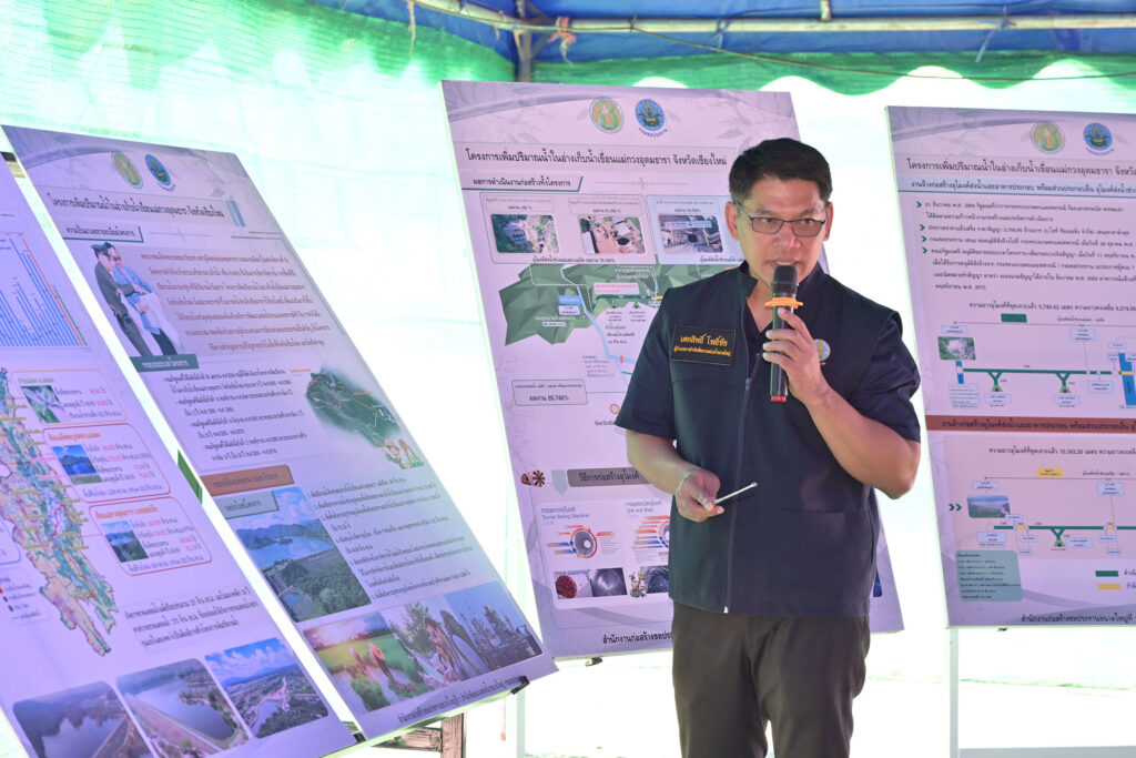 ณ บริเวณปากอุโมงค์ก่อสร้างที่ 6 นายเศกสิทธิ์ โพธิ์ชัย ผู้อำนวยการสำนักพันาแหล่งน้ำขนาดใหญ่ นายอัฏฐวิชย์ นาควัชระ ผู้อำนวยการ สำนักงานชลประทานที่ 1 และ นายปกครอง สุดใจนาค ผู้อำนวยการสำนักงานก่อสร้างชลประทานขนาดใหญ่ที่ 1 ร่วมกันรายงานเกี่ยวกับโครงการเพิ่มปริมาณน้ำในอ่างเก็บน้ำเขื่อนแม่กวงอุดมธาราและความคืบหน้าการก่อสร้างอุโมงค์ส่งน้ำ ว่า กรมชลประทานได้ดำเนินการก่อสร้างอ่างเก็บน้ำเขื่อนแม่กวงอุดมธาราแล้วเสร็จในปี 2563 ครอบคลุมพื้นที่ชลประทาน 175,000 ไร่ มีความจุอ่างเก็บน้ำ 263 ล้านลูกบาศก์เมตร และจากสถิติที่ผ่านมา มีน้ำท่าไหลเข้าอ่างเก็บน้ำปีละ 202 ล้านลูกบาศก์เมตร ประกอบกับพื้นที่จังหวัดเชียงใหม่และจังหวัดลำพูนบริเวณที่ใช้น้ำจากเขื่อนแม่กวงอุดมธาธารา มีความต้องการใช้น้ำปริมาณมากกว่าปริมาณน้ำต้นทุนที่มีอยู่ ส่งผลให้เกิดการขาดแคลนน้ำและมีแนวโน้มในอนาคตคาดว่าจะขาดแคลนน้ำในปริมาณที่เพิ่มมากขึ้น