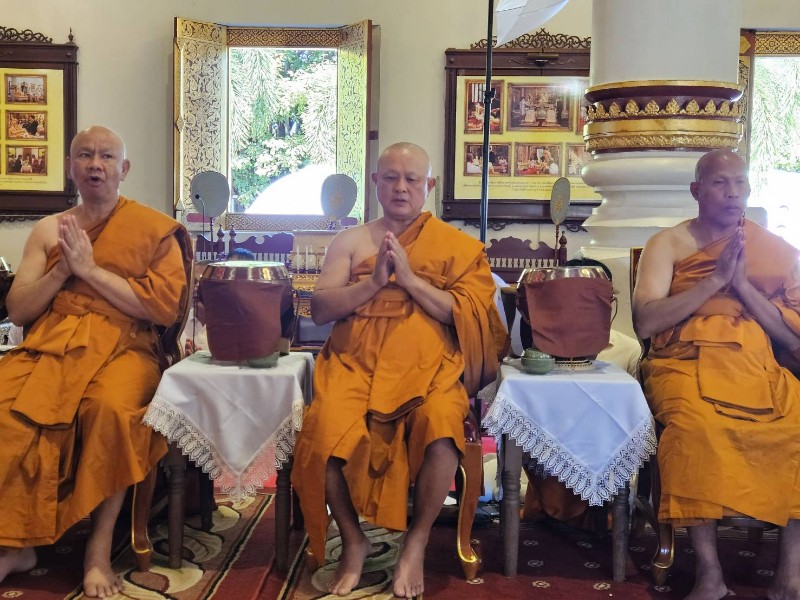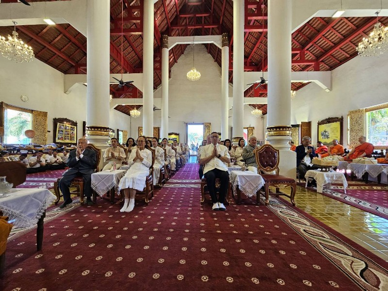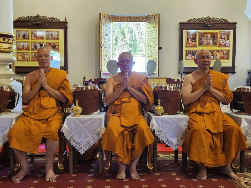 โดยมีร้อยเอก ธรรมนัส พรหมเผ่า รองนายกรัฐมนตรีและรัฐมนตรีว่าการกระทรวงเกษตรและสหกรณ์ นาย นเรศ ธำรงทิพยคุณ รัฐมนตรีช่วยว่าการกระทรวงเกษตรและสหกรณ์ พลตำรวจโท กฤตธาพล ยี่สาคร ผู้บัญชาการตำรวจภูธรภาค 5 นาย รัฐพล นราดิศร ผู้ว่าราชการจังหวัดเชียงใหม่ และกัลยาณมิตร เดินทางมาร่วมพิธีอุปสมบทหมู่ จำนวนมาก และร่วมพิธีใส่บาตรพระใหม่ ทั้ง 8 รูป ตามความเชื่อ จะได้กุศลผลบุญ มากมายมหาศาล หลังเสร็จพิธี พระใหม่ทั้ง 8 รูป จะเดินทางไป ปฎิบัติธรรม นั่งสมาธิกรรมฐาน ที่ศูนย์ปฎิบัติธรรม ตาณัง เลณัง เฉลิมราชย์ 60 ปี ในอำเภอดอยสะเก็ด จังหวัดเชียงใหม่ จนถึงวันที่ 6 ธันวาคม 2568 และจะไปลาสิกขา ที่วัดร่ำเปิง ตโปทาราม ตำบลสุเทพ จังหวัดเชียงใหม่ เพื่อทดแทนคุณบิดามารดา ผู้มีพระคุณ และน้อมถวายเป็นพระราชกุศล สมเด็จพระนางเจ้าสิริกิติ์ พระบรมราชินีนาถ พระบรมราชชนนี พันปีหลวง