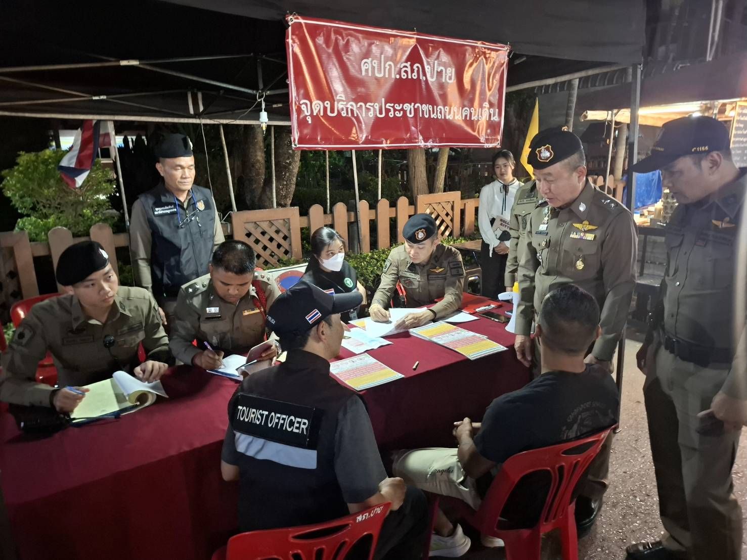 22 กุมภาพันธ์ 2568 เวลา 17.30 น.พล.ต.ต.ทรงกริช ออนตะไคร้ ผบก.ภ.จว.แม่ฮ่องสอน ,พ.ต.อ.สำเร็จ สามสีทอง ผกก.สภ.ปาย ,พ.ต.ท.วีรภัทร คำลาพิช รอง.ผกก.สภ.ปาย ร่วมกับ ตำรวจท่องเที่ยแม่ฮ่องสอน ,ตำรวจตรวจคนเข้าเมืองแม่ฮ่องสอน , ฝ่ายปกครองอำเภอปาย, สาธารณสุขอำเภอปาย, กต.ตร.สภ.ปาย