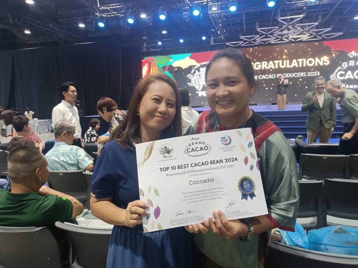 กลุ่มวิสาหกิจชุมชนศูนย์เรียนรู้แปรรูปโกโก้ดอย ตำบลเชิงดอย อำเภอดอยสะเก็ด จังหวัดเชียงใหม่ นำโดย ผศ. ดร.ชินานาฏ วิทยาประภากร อาจารย์สาขาวิทยาศาสตร์ คณะวิทยาศาสตร์และเทคโนโลยีการเกษตร มหาวิทยาลัยเทคโนโลยีราชมงคลล้านนา หัวหน้าโครงการวิจัย เข้ารับรางวัล “10 สุดยอดเมล็ดโกโก้ไทย ประจำปี 2567” (Thailand Top Ten Cocoa Bean Award) ในงาน FTI EXPO 2025 ณ ศูนย์ประชุมแห่งชาติสิริกิติ์ กรุงเทพมหานคร จัดโดย สมาคมการค้าโกโก้และช็อกโกแลตไทย (TACCO) โดยได้รับเกียรติจาก นายอภิชิต ประสพรัตน์ ประธานการจัดงาน FTI EXPO 2025 และ ดร.กิตติโชติ ศุภกำเนิด ผู้อำนวยการกองพัฒนาเกษตรอุตสาหกรรม กรมส่งเสริมอุตสาหกรรม เป็นผู้มอบรางวัลให้แก่ผู้ประกอบการที่ได้รับการคัดเลือกเป็น TOP 10 of the Year 2024 เพื่อยกระดับมาตรฐานเมล็ดโกโก้ไทยให้ทัดเทียมระดับสากล โดยเมล็ดโกโก้ที่ได้รับรางวัลต้องผ่านเกณฑ์คุณภาพระดับโลก Cacao of Excellence ซึ่งถือเป็นมาตรฐานสำคัญของอุตสาหกรรมโกโก้และช็อกโกแลต