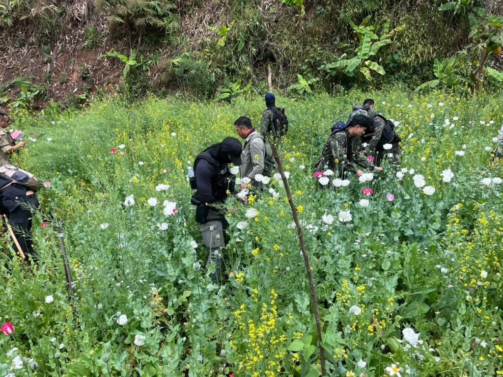 เชียงใหม่-ตำรวจ สภ.สะเมิง ร่วมกับฝ่ายปกครอง ลงพื้นที่ตรวจสอบและทำลายแปลงปลูกฝิ่น ในเขตพื้นป่า บ้านผายอง อ.สะเมิง จ.เชียงใหม่
