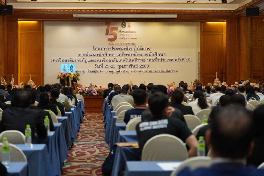 มหาวิทยาลัยเทคโนโลยีราชมงคลล้านนา (มทร.ล้านนา) เป็นเจ้าภาพจัดการประชุมเชิงปฏิบัติการการพัฒนานักศึกษา เครือข่ายกิจการนักศึกษา มหาวิทยาลัยราชภัฏและมหาวิทยาลัยเทคโนโลยีราชมงคลทั่วประเทศ ครั้งที่ 15 ณ โรงแรมคุ้มภูคำ จังหวัดเชียงใหม่ โดยมีผู้บริหาร คณาจารย์ และบุคลากรผู้รับผิดชอบด้านกิจการนักศึกษาเข้าร่วมกว่า 300 คน โดยได้รับเกียรติจาก ดร.พันธุ์เพิ่มศักดิ์ อารุณี รองปลัดกระทรวงการอุดมศึกษา วิทยาศาสตร์ วิจัยและนวัตกรรม เป็นประธานในพิธีและบรรยายพิเศษในหัวข้อ “การขับเคลื่อนนโยบายการขับเคลื่อนการพัฒนากำลังคนด้าน AI ของกระทรวง อว.” โดยมี นายศิวะ ธมิกานนท์ รองผู้ว่าราชการจังหวัดเชียงใหม่ กล่าวต้อนรับ และ ผศ.ดร.อรรณพ ทัศนอุดม รักษาราชการแทนอธิการบดีมหาวิทยาลัยเทคโนโลยีราชมงคลล้านนา กล่าวรายงานในฐานะเจ้าภาพการจัดงาน ระหว่างวันที่ 23 – 25 กุมภาพันธ์ 2569