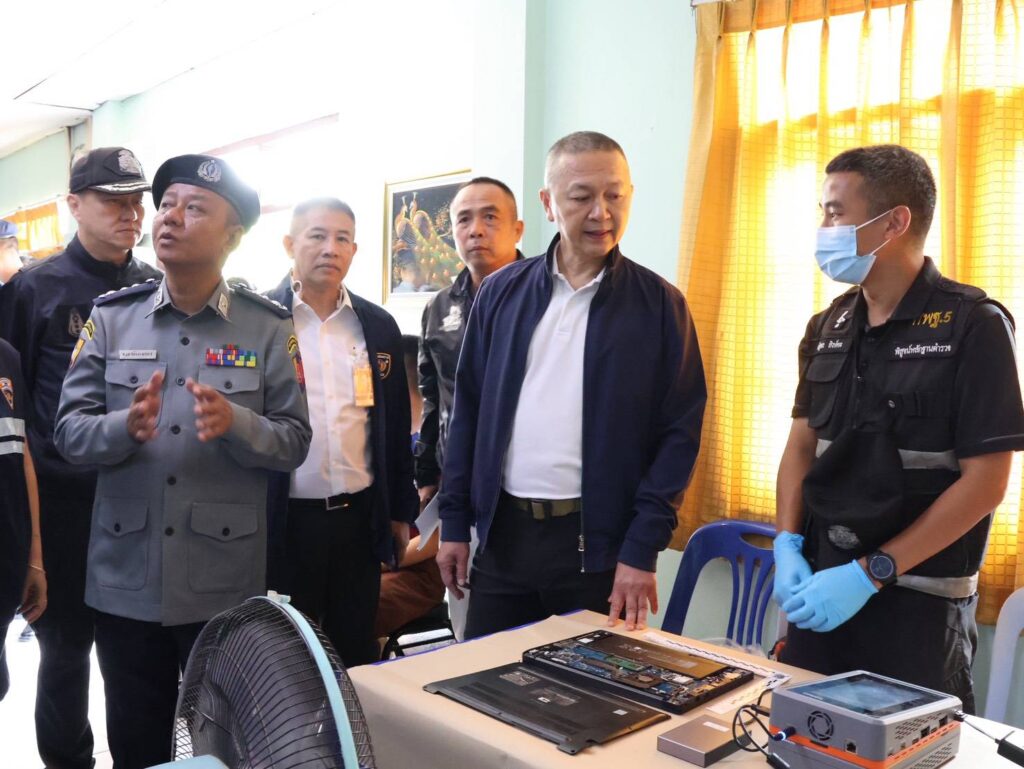 พล.ต.อ.ธัชชัยฯ เปิดเผยว่า ได้รายงานไปยัง ผบ.ตร. กรณีมีการจับกุมคนไทย จำนวน 24 คน จากจำนวนทั้งหมด 231 คน ในฝั่งเมืองท่าขี้เหล็ก ประเทศเมียนมา ซึ่งสำนักงานตำรวจแห่งชาติของไทยได้ส่งทีมผู้เชี่ยวชาญในการรวบรวมพยานหลักฐาน ทั้งการตรวจที่เกิดเหตุและการรวบรวมพยานหลักฐานทางอิเล็กทรอนิกส์ โดยมีตัวแทนจากกองบัญชาการตำรวจสืบสวนสอบสวนอาชญากรรมทางเทคโนโลยี และกองบังคับการปราบปรามการค้ามนุษย์ กองบัญชาการตำรวจสอบสวนกลาง ได้มาร่วมเก็บรวบรวมพยานหลักฐานต่าง ๆ โดยต้องเข้าสู่กระบวนการคัดกรองคัดแยก (NRM) คนไทยทั้ง 24 คนก่อน ว่าเป็นเหยื่อของการค้ามนุษย์หรือไม่ เบื้องต้นยังไม่มีความชัดเจนว่าเป็นการกระทำผิดกฎหมายในเรื่องการพนันออนไลน์หรือคอลเซ็นเตอร์หรือไม่ โดยต้องมีการทำงานร่วมกับศูนย์ปราบปรามอาชญากรรมทางเทคโนโลยีสารสนเทศ สำนักงานตำรวจแห่งชาติ ซึ่งมี พล.ต.อ.ธนา ชูวงศ์ รอง ผบ.ตร. เป็นผู้อำนวยการศูนย์ฯ และมี พล.ต.ท.จิรภพ ภูริเดช ผู้ช่วย ผบ.ตร./รอง ผอ.ศูนย์ฯ ซึ่งรับผิดชอบเรื่องอาชญากรรมออนไลน์และแก๊งคอลเซ็นเตอร์ด้วย