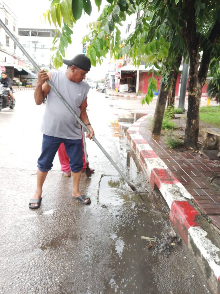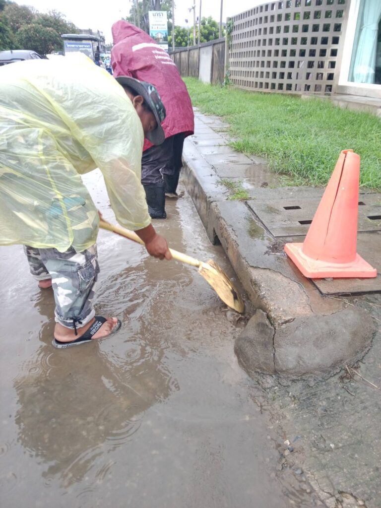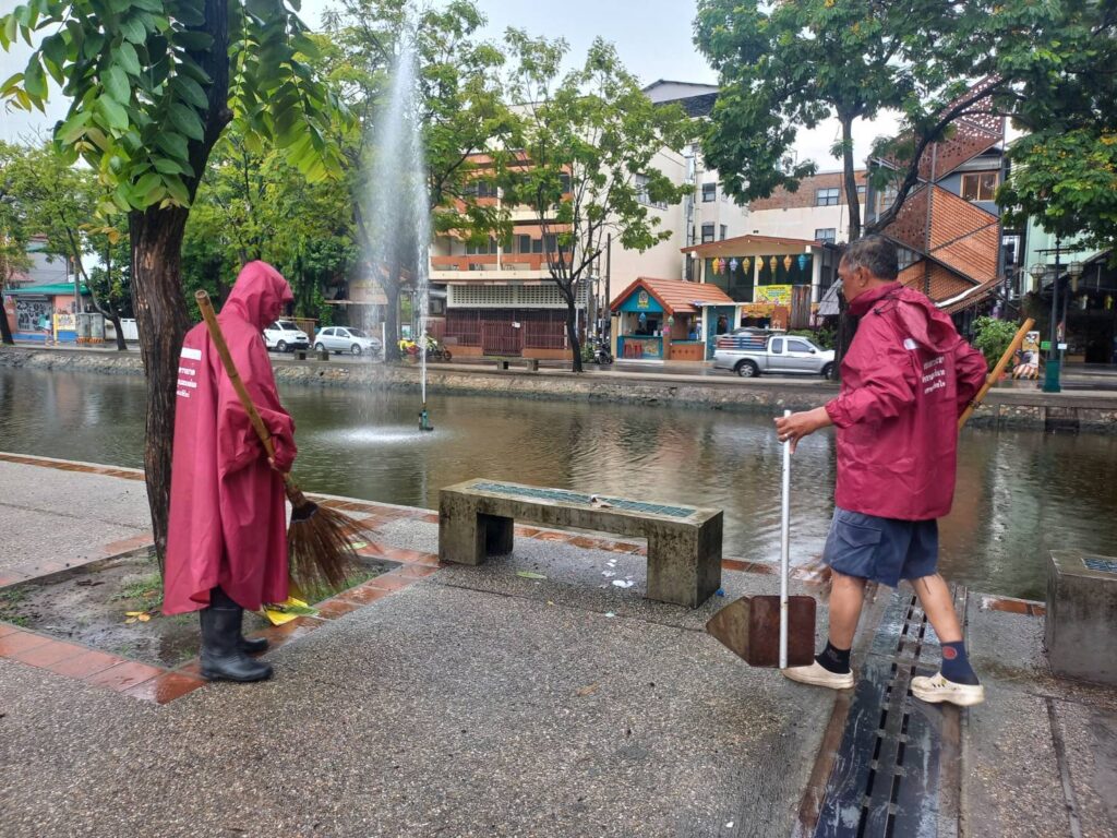 ฝนตกหนัก และตกต่อเนื่องมาตลอดทั้งคืน เช้าวันนี้ สำนักสาธารณสุขและสิ่งแวดล้อม เทศบาลนครเชียงใหม่ ได้จัดเจ้าหน้าที่งานรักษาความสะอาด ส่วนบริการอนามัยสิ่งแวดล้อม ออกปฏิบัติงานในพื้นที่รับผิดชอบรอบคูเมืองเชียงใหม่ ทั้งด้านในด้านนอก ถนนสายต่างๆ จุดพื้นที่น้ำท่วมซ้ำซาก เข้าไปกำจัดสิ่งกีดขวางทางน้ำที่ไหลมากับน้ำในช่วงที่ฝนตกเพื่อให้น้ำสามารถไหลระบายได้ดีขึ้น เพื่อไม่ให้เกิดน้ำท่วมขังรอการระบาย ในแต่ละพื้นที่ จุดไหนที่นำระบายได้ช้าก็ดำเนินการขุดลอกดูปฎิกูลต่างๆ ที่ไหลผ่านตะแกรงลงไปในท่อระบายน้ำ อย่างไรก็ตามในตัวเมืองเชียงใหม่ ฝนได้หยุดตกลงแล้ว ไม่มีน้ำฝนตกลงมาเพิ่มเติมทำให้เกิดน้ำท่วมขัง จุดี่น้ำขังซ้ำซากก็เริ่มลดลงบางจุดกลับมาสูสภาวะปกติแล้ว