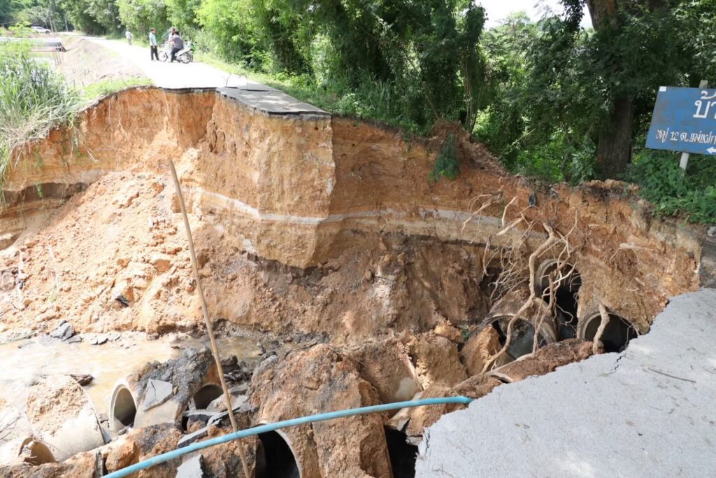 ในเบื้องต้นอบจ.เชียงใหม่ ได้ทำการรื้อท่อระบายน้ำเดิมที่ได้รับความเสียหาย และปรับระดับท่อให้เท่ากัน จากนั้นจะดำเนินการถมดิน พร้อมบดอัดถนนใหม่ เพื่อให้ประชาชนสามารถสัญจรไปมาได้อย่างสะดวก และปลอดภัย