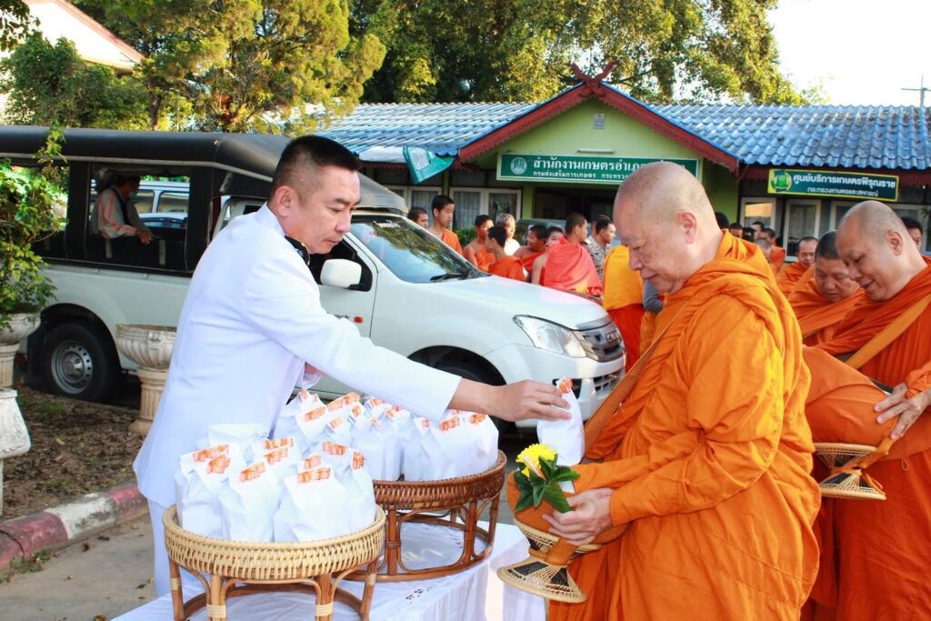 โดยมี หัวหน้าส่วนราชการอำเภอแม่แตง สมาชิกกิ่งกาชาดอำเภอแม่แตง องค์กรปกครองส่วนท้องถิ่น ข้าราชการ กำนัน ผู้ใหญ่บ้าน หน่วยงานภาคเอกชน ประชาชนในพื้นที่อำเภอแม่แตง ร่วมพิธีทำบุญตักบาตรเพื่อถวายพระราชกุศลฯ ณ หอประชุมศาลาประชาคม อำเภอแม่แตง จังหวัดเชียงใหม่