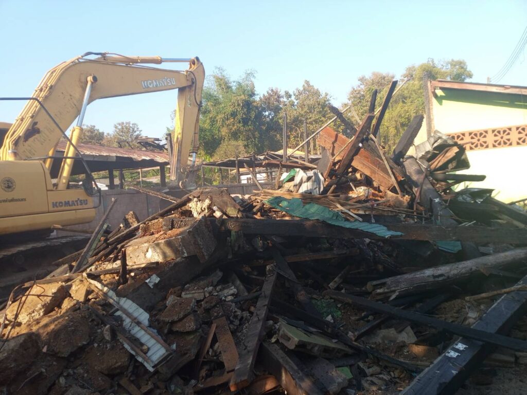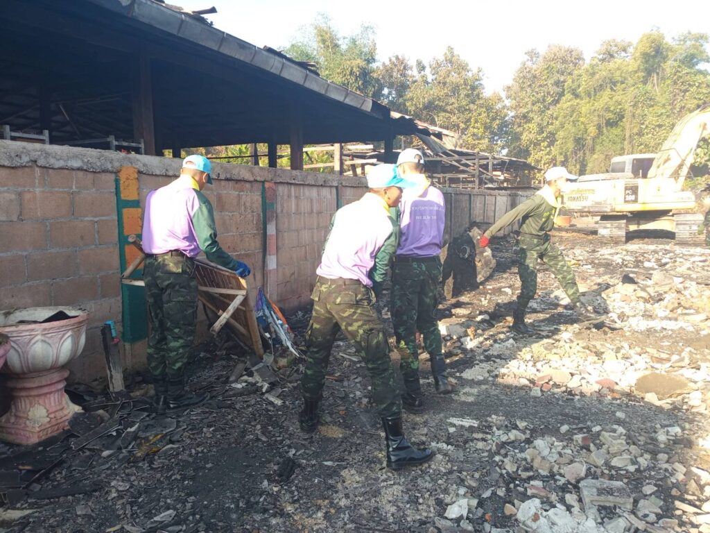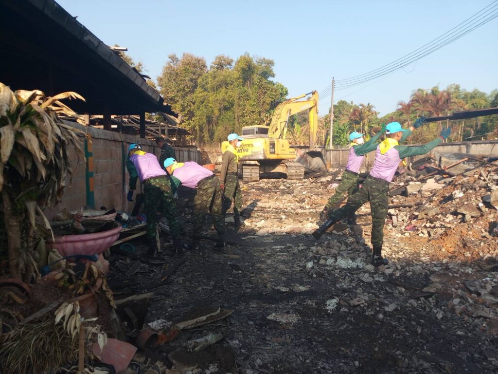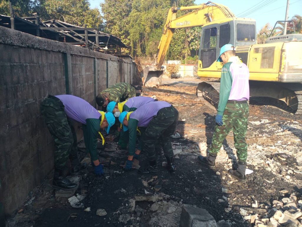 เชียงใหม่-หน่วยเฉพาะกิจไชยานุภาพ ร่วมกับ เทศบาลตำบลไชยปราการ รื้อถอนบ้านของประชาชนที่ประสบอัคคีภัย เก็บซากปรักหักพัง