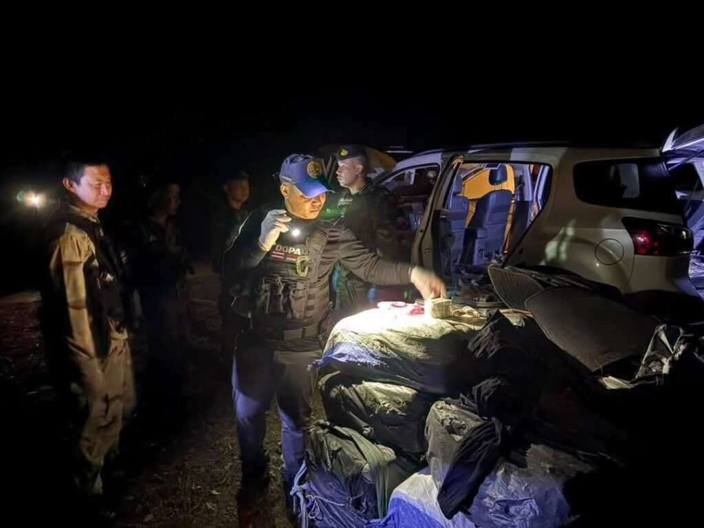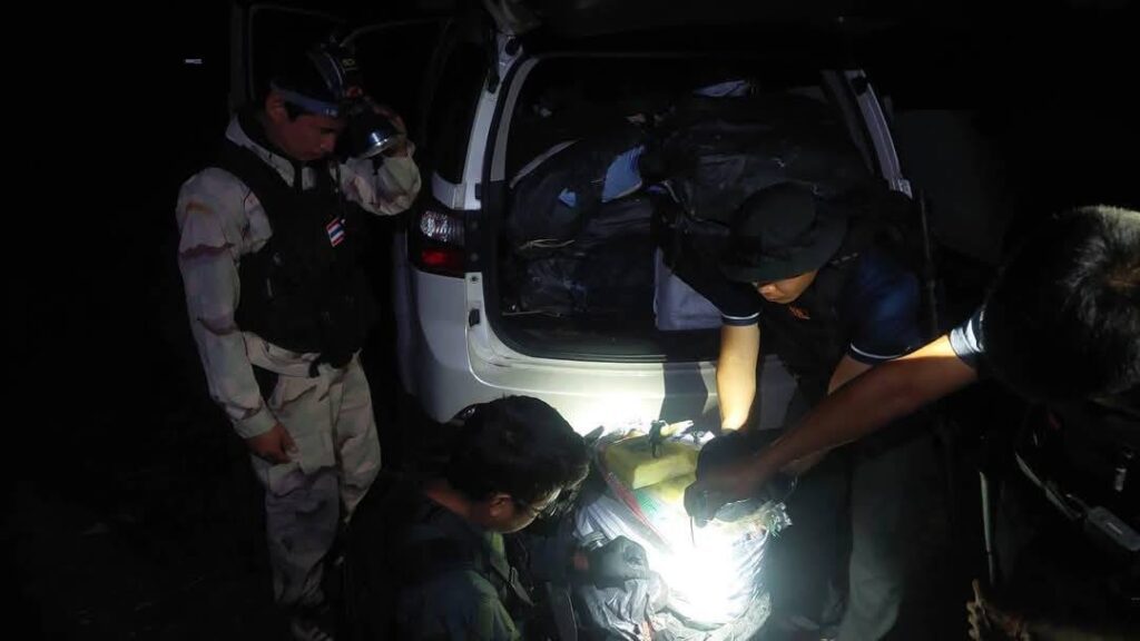 กระทั่งเมื่อเวลา 20.00 น. ตรวจพบรถยนต์ต้องสงสัยขับเข้ามาบริเวณก่อนถึงจุดตรวจ พบผู้ต้องสงสัย 1 คน ได้เปิดประตูรถวิ่งหลบหนีเข้าไปในป่าข้างทาง เจ้าหน้าที่จึงได้วิ่งติดตาม แต่ไม่พบตัว จึงเข้าตรวจสอบบริเวณดังกล่าว เบื้องต้นพบยาเสพติดประเภทยาบ้า จำนวน 2 เป้ ๆ ละประมาณ 200,000 เม็ด รวมประมาณ 400,000 เม็ด และตรวจพบกระเป้าเป้สัมภาระเปิดตรวจสอบภายในพบซองกระสุนภายในบรรจุลูกกระสุนปืนขนาด 7.62 มิลลิเมตร จำนวน 1 ซอง ตกอยู่บริเวณข้างทาง