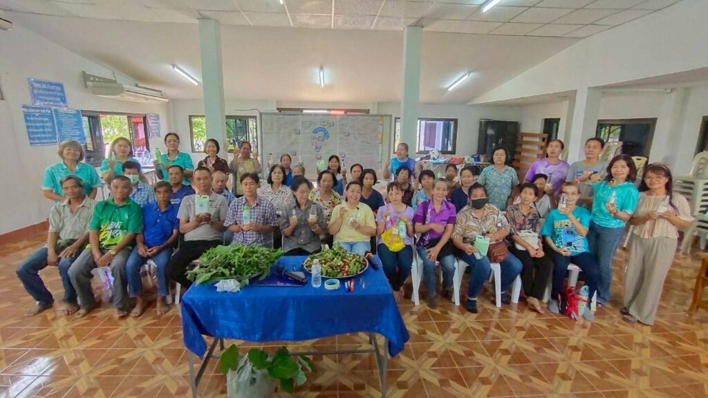 ระหว่างวันที่ 24-25 พฤษภาคม 2568 การอบรมปรับเปลี่ยนพฤติกรรมด้วยภูมิปัญญาพื้นบ้านของตำบลป่าแดง อ.เมือง จ.แพร่ โดยนำกลุ่มเป้าหมายที่มีค่าน้ำตาลในเลือดอยู่ในระดับ “กลุ่มเสี่ยง”คือค่าน้ำตาลในเลือด 100 – 140 mg% จำนวน 60 คน จากหมู่ที่ 1 หมู่ที่ 2 หมู่ที่ 3 หมู่ที่ 9 และหมู่ที่ 10 เป็นกิจกรรมอบรมช่วงสุดท้ายจากหลักสูตรอบรม 5 เดือนต่อเนื่อง ถือเป็นการปิดโครงการปรับเปลี่ยนพฤติกรรม และมีเป้าหมายการเปลี่ยนพฤติกรรมอย่างต่อเนื่อง ซึ่งในรอบ 5 เดือนที่ผ่านมาก่อนเริ่มอบรมมีการตรวจเช็คค่าน้ำตาลในเลือด ซึ่งทุกคนมีค่าน้ำตาลเกินกว่าปกติเสี่ยงต่อการเป็นโรคเบาหวาน นำมาอบรมให้ความรู้การปฏิบัติตัวในชีวิตประจำวัน โดยเฉพาะการบริโภคอาหารใน 24 ชั่วโมงต้องปฏิบัติตัวอย่างไร การออกกำลังกายอย่างไรให้เหมาะสมเช่น การเดิน การขี่จักรยาน ฯลฯ เมื่อให้ความรู้แล้วต้องนำไปปฏิบัติ โดยมีแกนนำที่มาจาก อาสาสมัครและ อสม.ที่มีความรู้การปฏิบัติตน หมู่บ้านละ 5 คนคอยเป็นพี่เลี้ยง พร้อมมีการรายงานการปฏิบัติผ่านกลุ่มไลน์